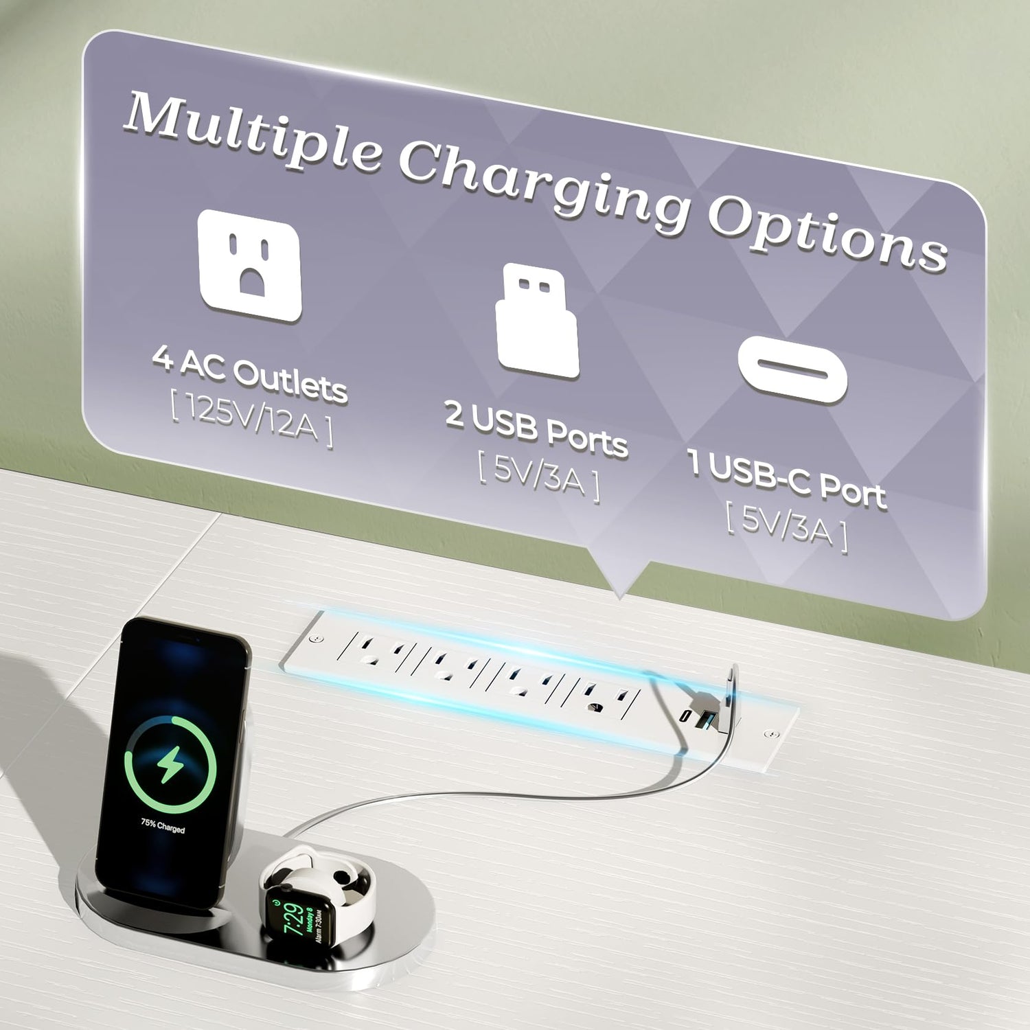- 【Built-In Charging Station】This led dresser TV stand doubles as a power strip with 2 AC outlets, 2 USB ports, and 1 USB-C port. Perfectly placed for your TV, speakers, gaming systems, or bedside gadgets, keeping everything charged and within reach. With 63 inch long desktop, it can support 65, 70 inches TV
