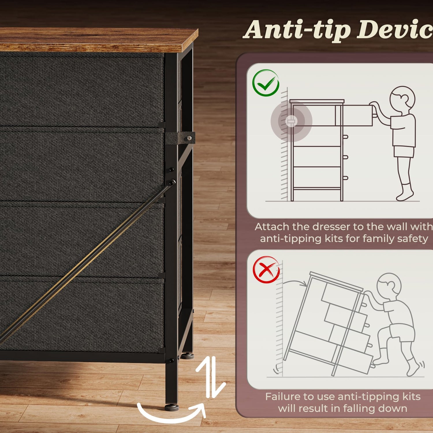 - 【Smooth, Durable Drawers】Sturdy fabric drawers with smooth-glide rails and sleek metal handles make opening and closing feel effortless, day in, day out. Each drawer od the dresser for bedroom includes a back stopper to prevent it from pulling all the way out, this dresser tv stand for bedroom is safe for busy households