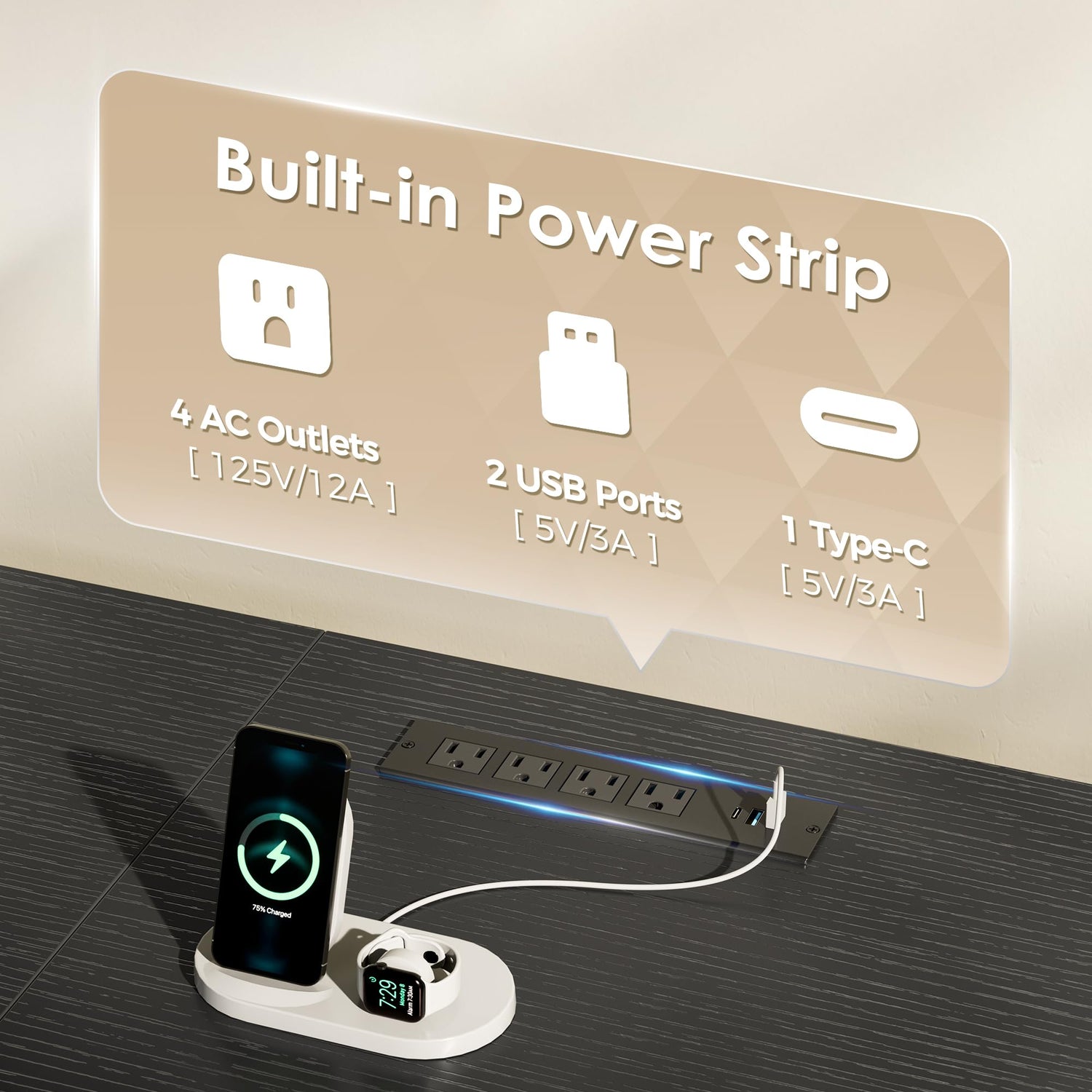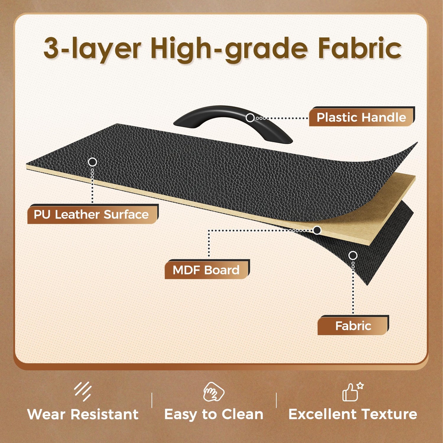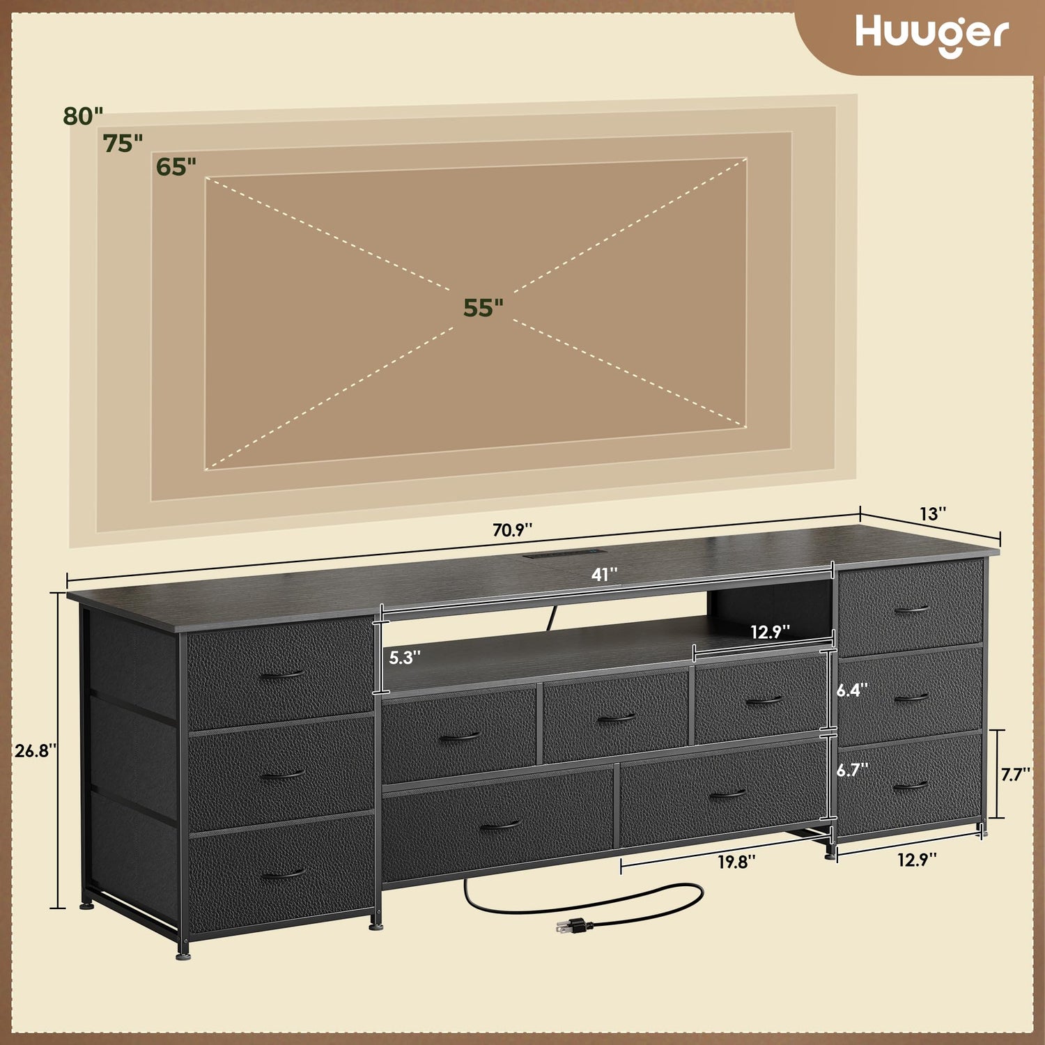 Huuger 70 Inch TV Stand for 75, 80 Inch TV, 11 Drawer Long Dresser with Power Outlets and LED Lights, Entertainment Center with Storage, Black Dresser with PU Leather Surface, 1TS011B