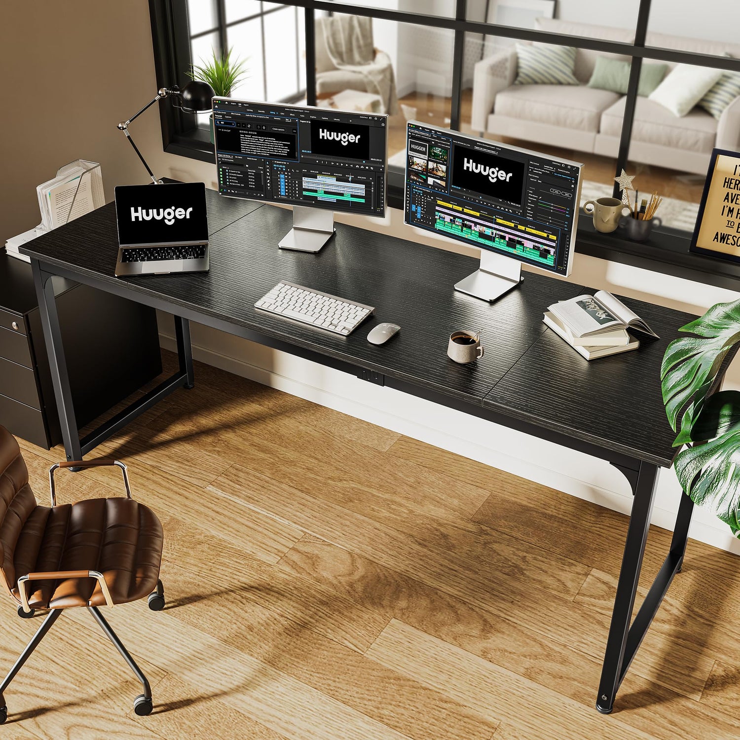 Huuger Computer Desk, 70 Inch Office Desk, Gaming Desk with Storage, Writing Desk Work Desk for Home Office, Study, Long Simple Desk, Large Legroom, Metal Frame, Black