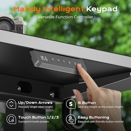 - 【Multi-Function Intelligent Keypad】 Operating Voltage: 110 - 220V. Equipped with a clear LED display and smooth-touch buttons, this intelligent keypad offers 3 height presets for your preferred positions. Effortlessly switch between sitting, standing, or anything in between with a single press. Adjustable height range: 28.4"~ 46.5". The “S” button allows you to save your desired heights to presets 1, 2, and 3