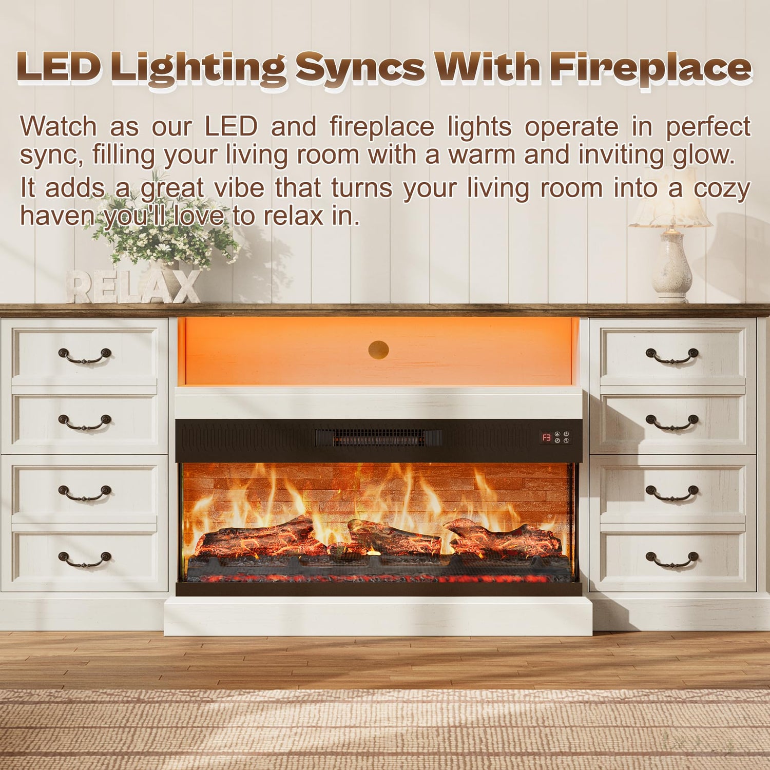 - 【LED Lighting for Extra Warmth and Style】Add LED light strip to the open shelf. The lighting can sync with the color and brightness of the fireplace or shut off independently. Control the fireplace or LED lightings to suit your mood, this fireplace tv stand for 80 inch tv can create a truly inviting living room space