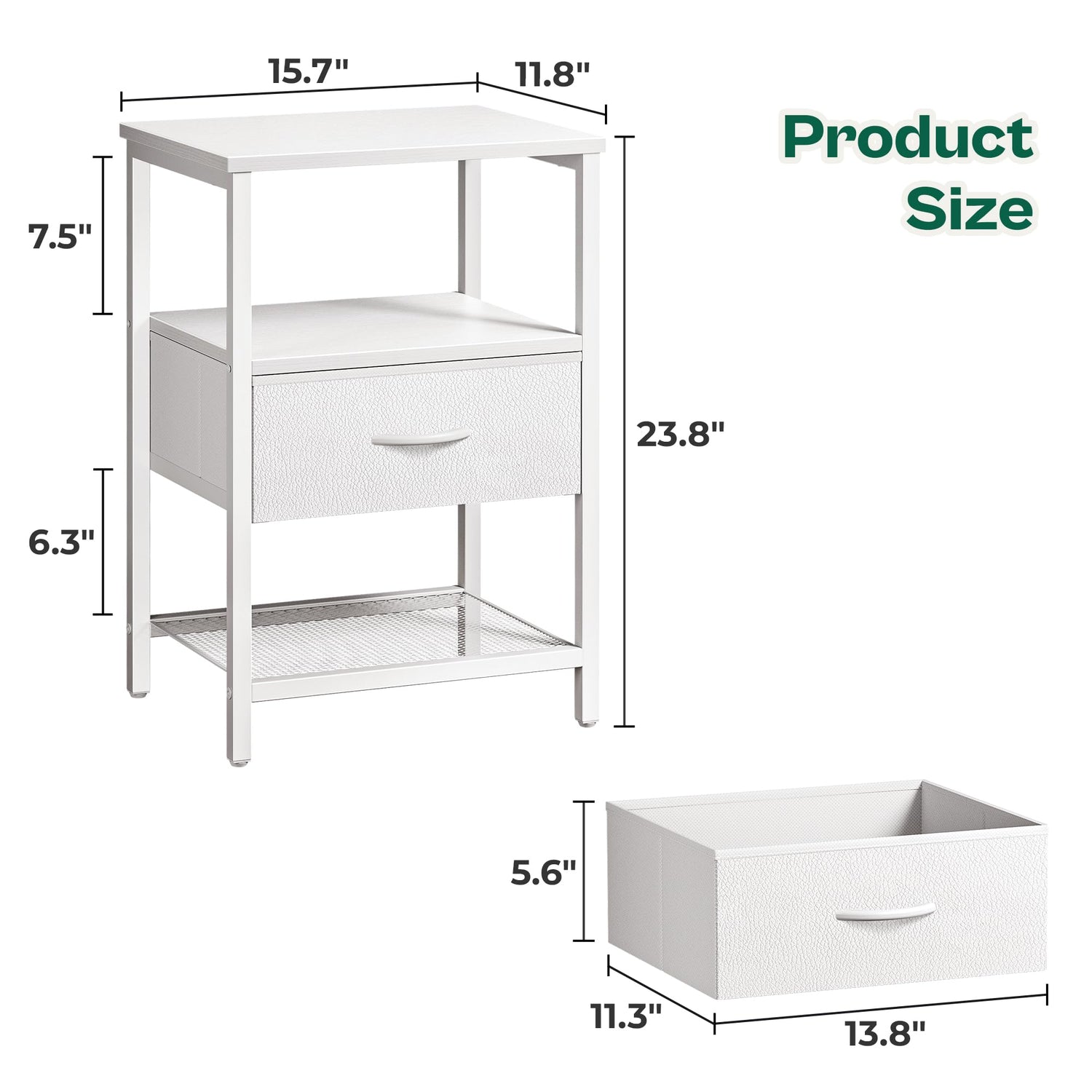 Huuger Night Stand with Fabric Drawer, Side Table with Mesh Shelf, Bedroom Nightstand, Fabric Drawer Dresser, Open Shelf, Metal Frame, Couch Side, White