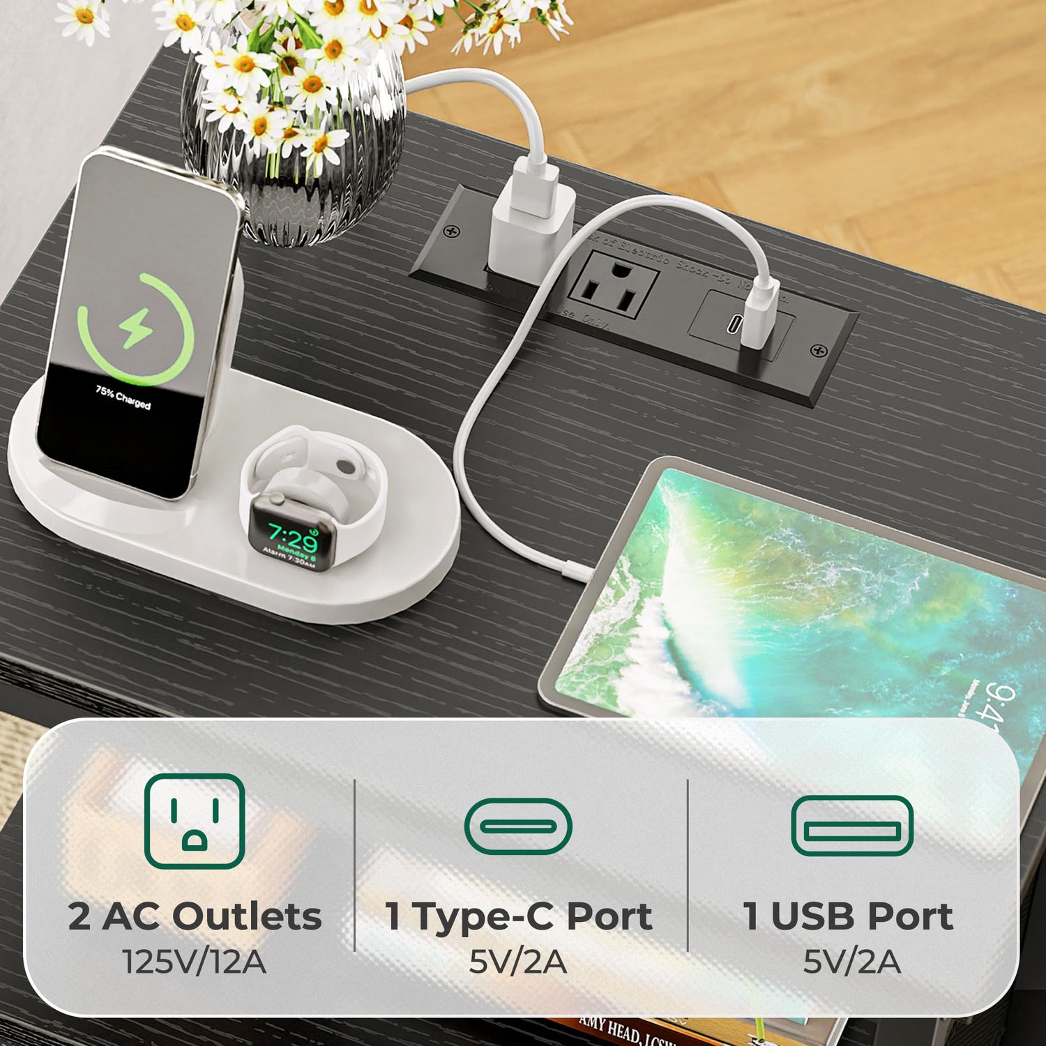 - 【Nightstand with Outlets】Add 2 AC outlets, 1 Type-C port and 1 USB port, more charging spots for bedtime, plug in your phones and turn on your lamps, this nightstand with drawer will comfort your bedtime with convenient charging