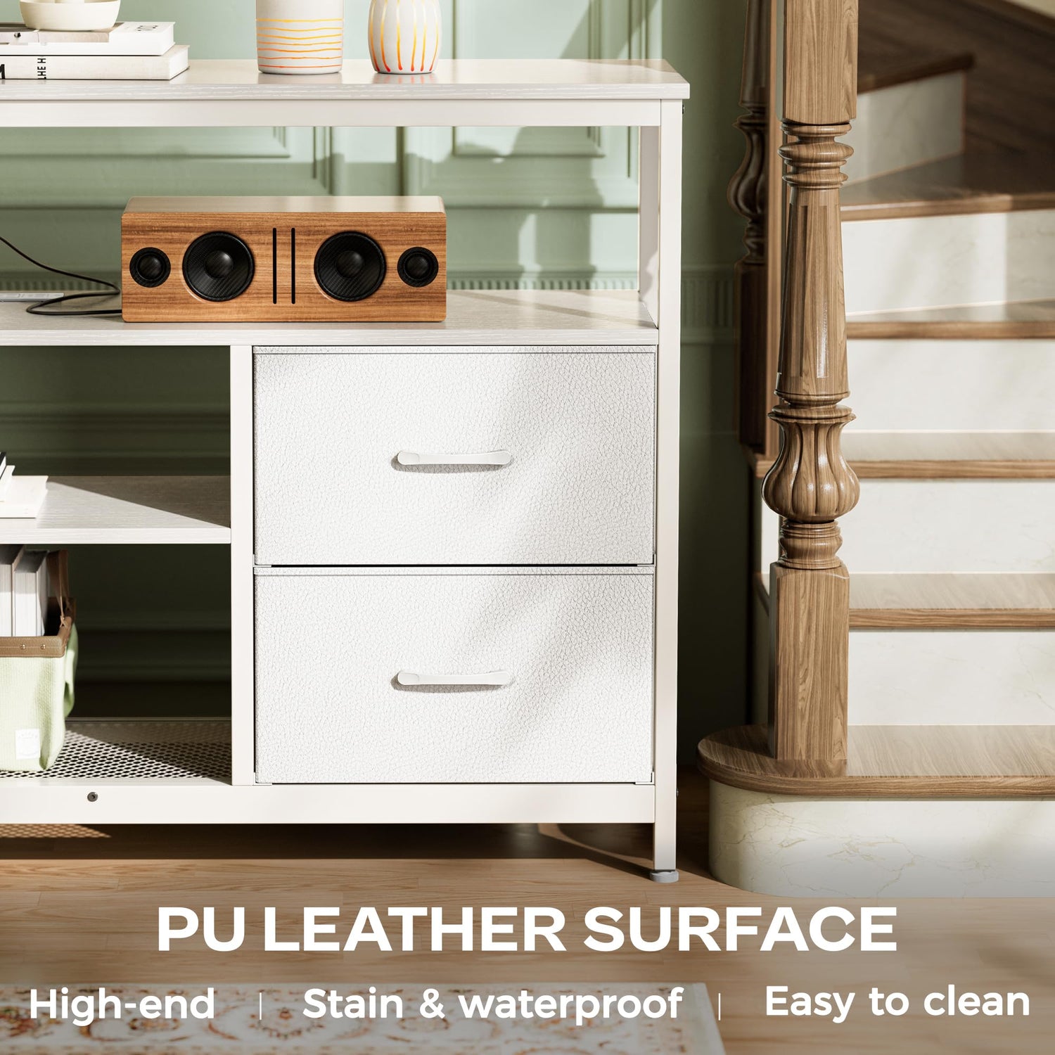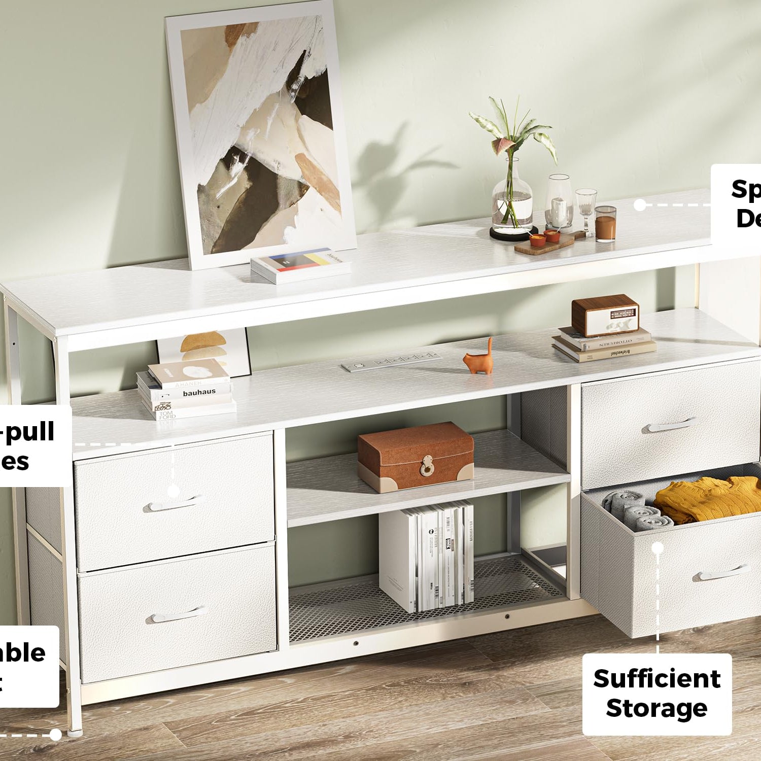 - 【Dresser with Power Outlets】Tired of tangled wires? Our TV entertainment center comes equipped with 4 AC outlets, 2 USB ports and 1 Type-C port, turning it into a charging hub for your TV, Wi-Fi router, and gaming gears. Keep everything organized on the open shelf, maintaining a clutter-free TV console table