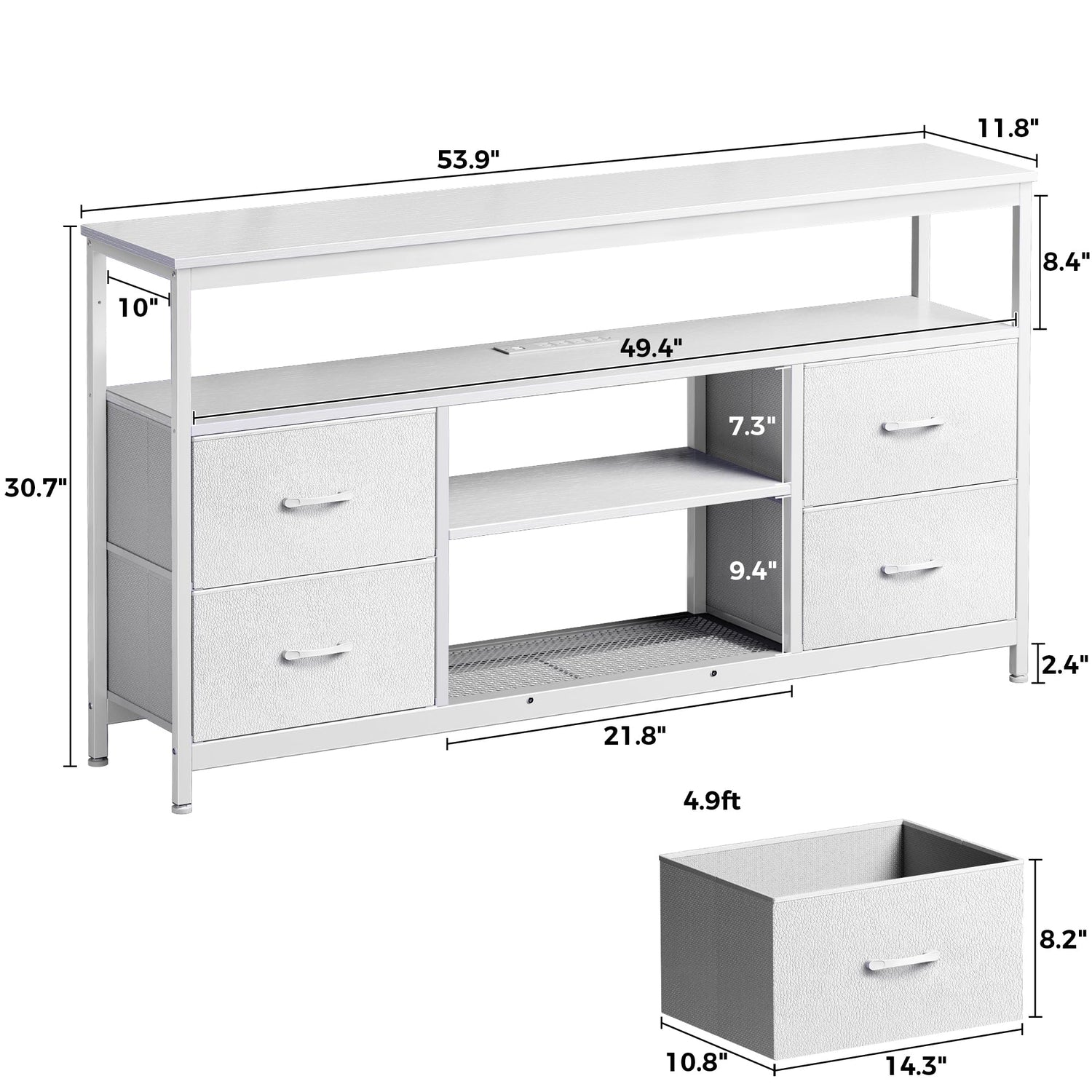 - 【Support TV & Ample Storage】Support and style go hand in hand with our robust TV stand. Ideal for TVs up to 65 inches, it features 4 sleek fabric drawers and a large tabletop for all your storage needs. Adjustable shelving offers flexibility for items big or small—be it your sound system or your favorite games