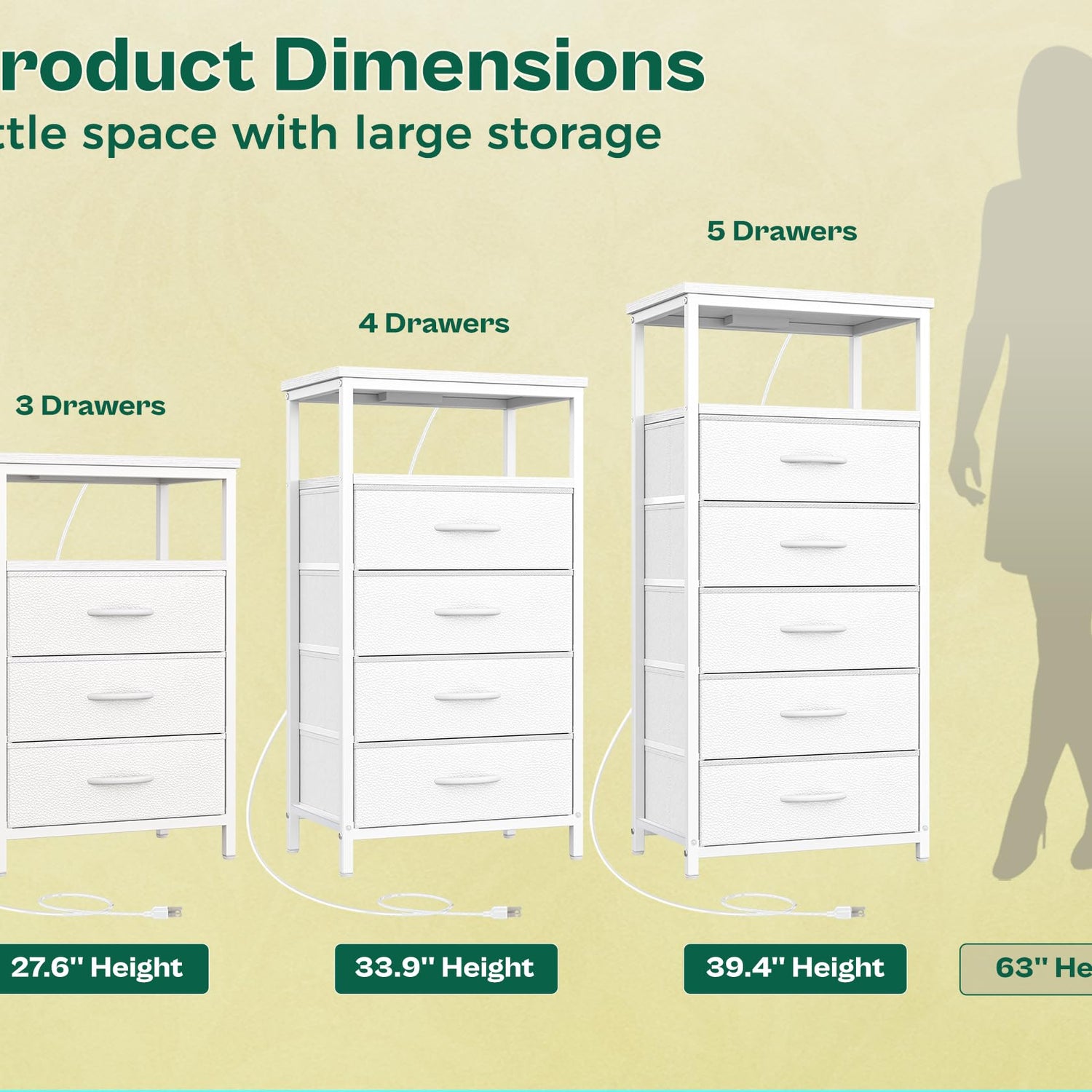 - 【Dresser with Charging Station】Equipped with 2 AC outlets, 1 USB-C port and 1 USB port on the tabletop, this fabric dresser allows you to effortlessly charge your speaker box, lamps or other lighted devices in your bedroom or living room