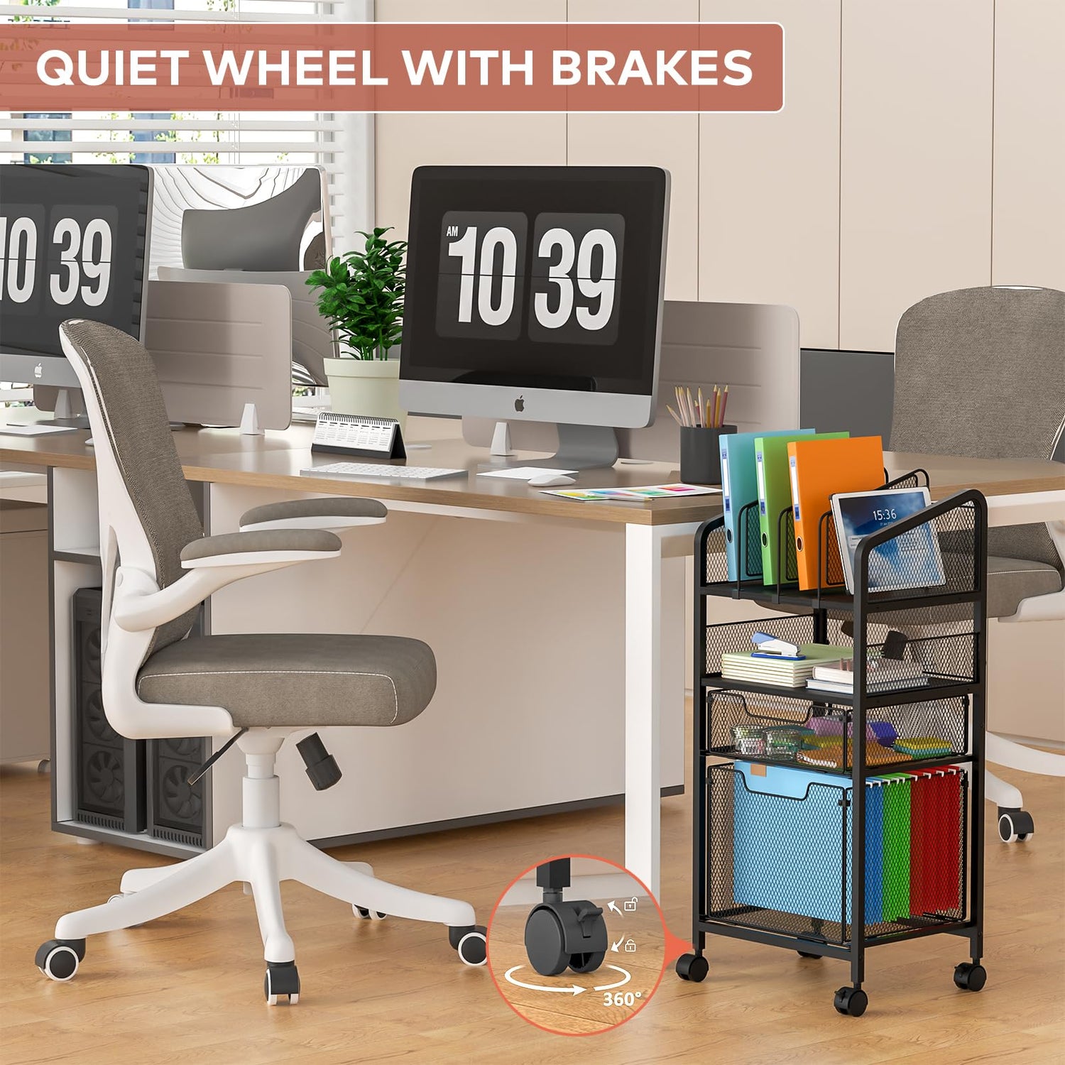 Huxitocan 4-Tier Rolling File Cart with Hanging File Organizer, Mobile File Cabinet with Storage Drawer, Rolling Utility Cart Storage and Organizer Office Cabinet for Home Office