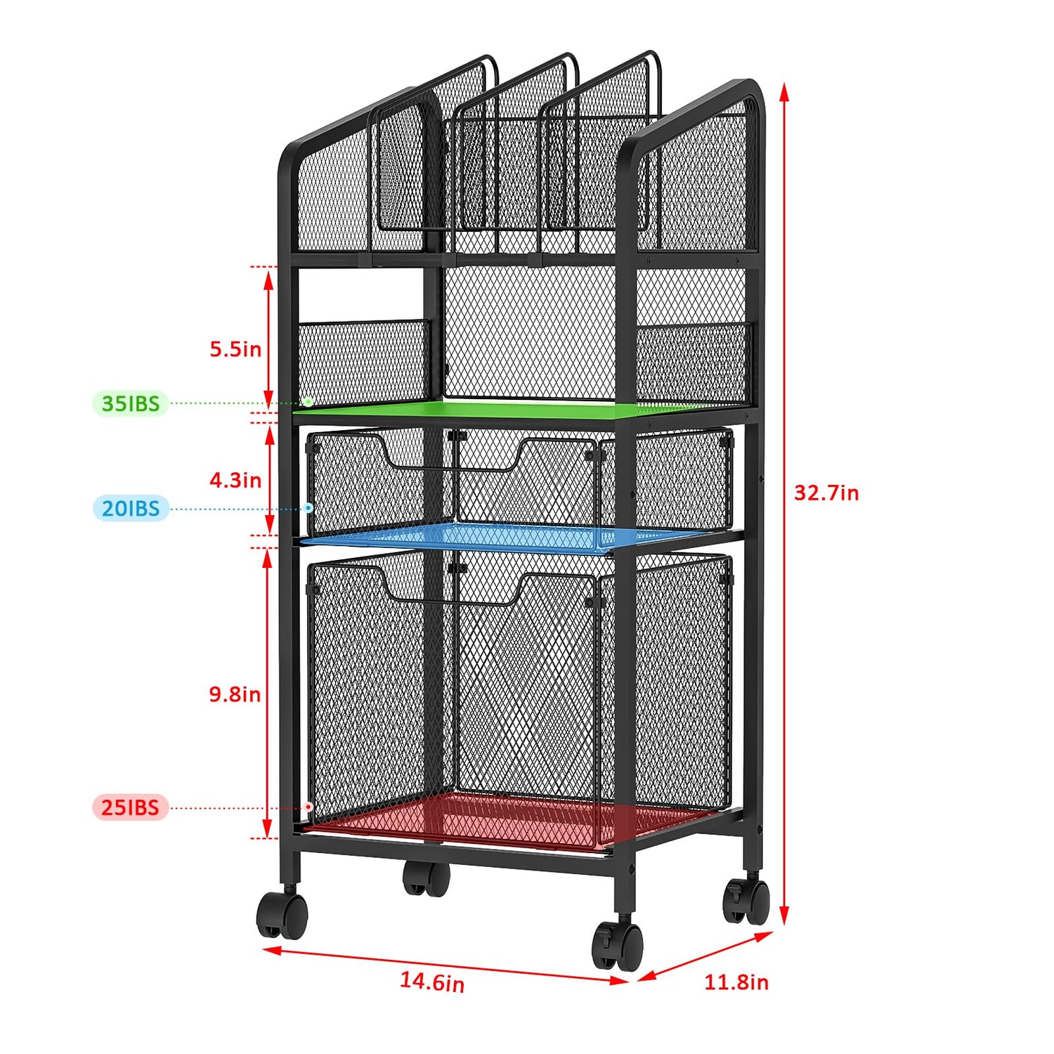- 【Quality Material】The top and the second layers are made of wood, the rest of the mesh file organizer cart is made of metal material, with a stable structure that is not easily shaken and a rust-resistant coating on the surface. Comes with directions, it is easy to set up.