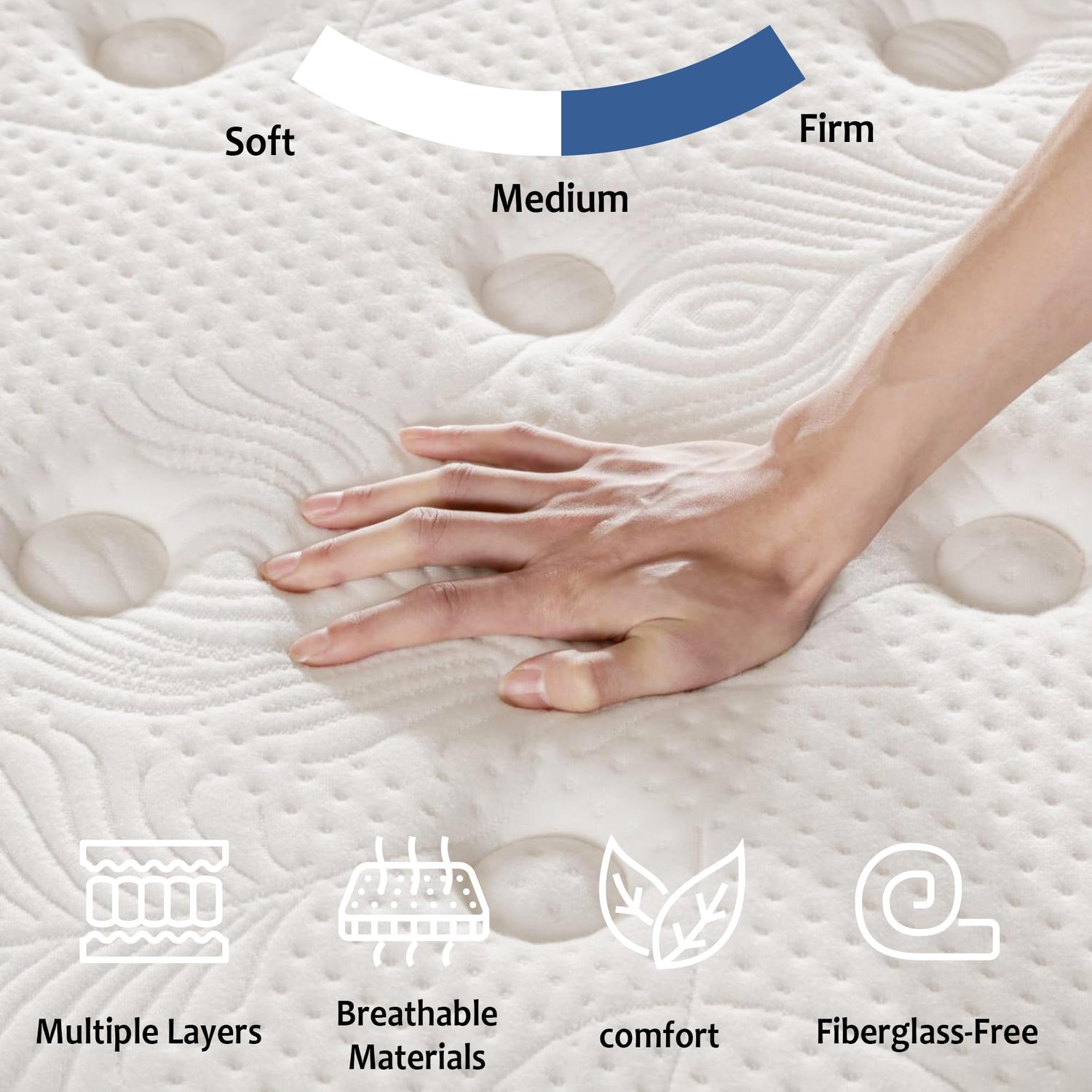Huyamy Full Mattresses,Hybrid 12 Inch Full Mattress in a Box,Memory Foam & Individually Pocket Spring for Pain Relief,Pressure Relief,Certified.