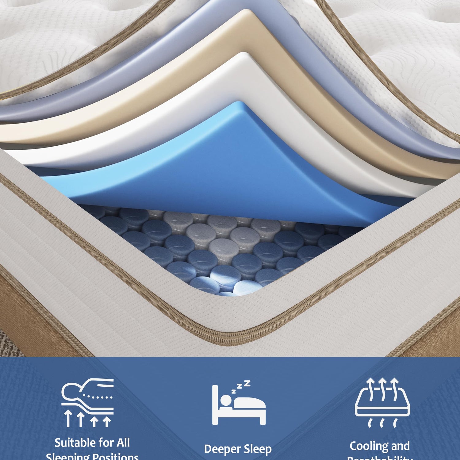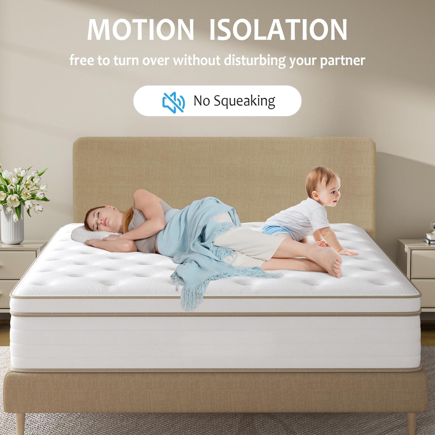- Quiet and Independent Spring: built-in high-quality independent pocket spring and slow rebound sponge, which can effectively absorb the noise and vibration caused by turning over during sleep, do not disturb your companions, and sleep peacefully. The support system consists of hundreds of independent pockets of Composed of spring coils, it has excellent shock absorption and elasticity, and can effectively adjust the quality of sleep.