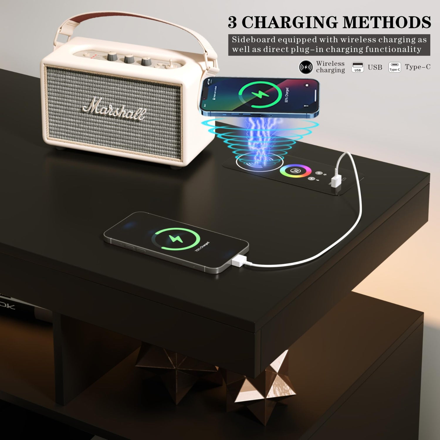 Charging your devices has never been easier, thanks to the built-in USB and Type-C ports, alongside a wireless charging station, eliminating the hassle of searching for outlets while you entertain or prepare meals.