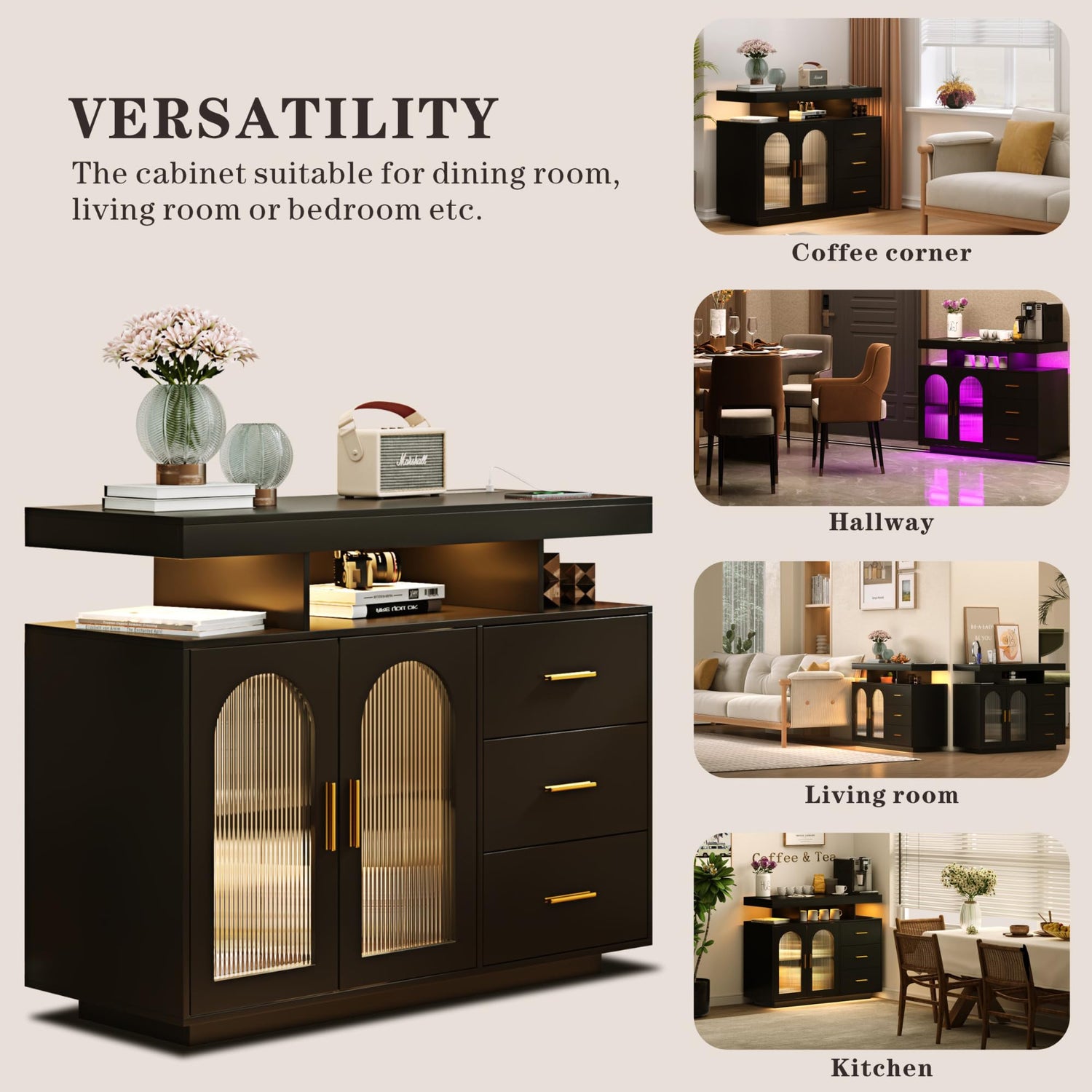 Transform your space with this multifunctional sideboard that effortlessly combines style with practicality.