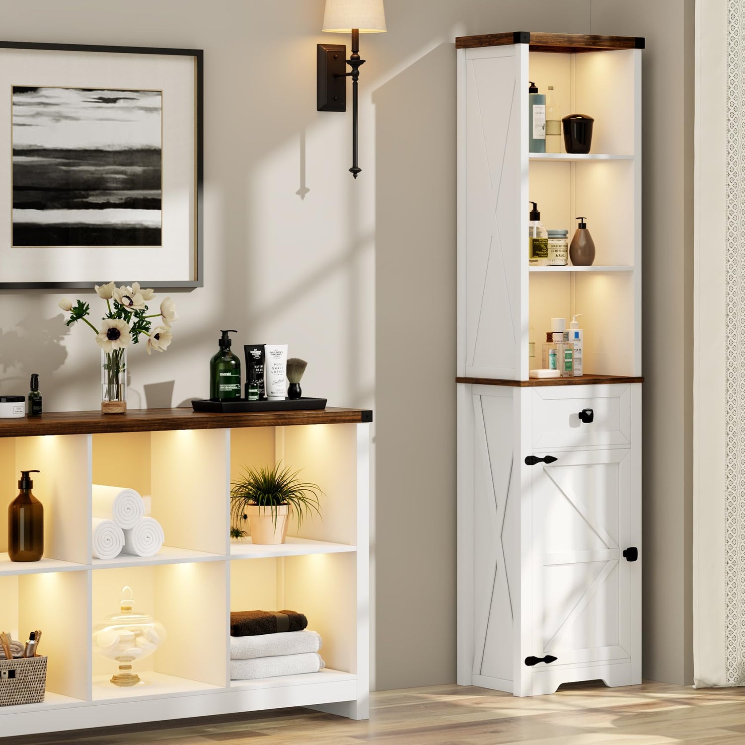 HWB Farmhouse 6 Cube White Bookcase with LED Lighting and Charging Station