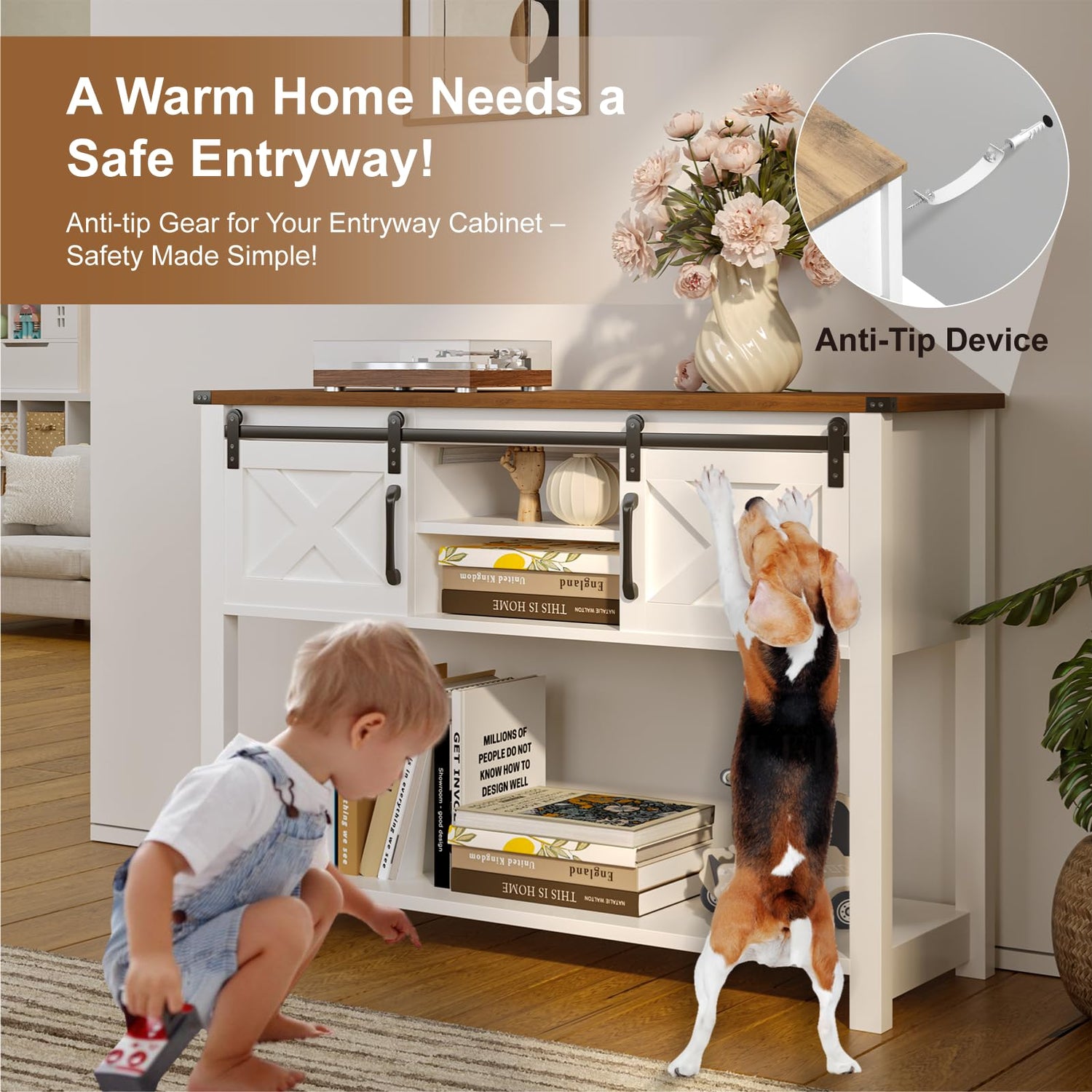- Versatile Design for Entryway, Living Room, or Coffee Bar: This farmhouse entryway table is not just functional but also stylish. Its sliding barn doors add a touch of rustic charm, while the smooth-gliding mechanism ensures easy access to the storage space. Whether you're looking for a farmhouse coffee bar, a console table for your entryway, or a living room furniture piece, this table is the perfect addition to your home.