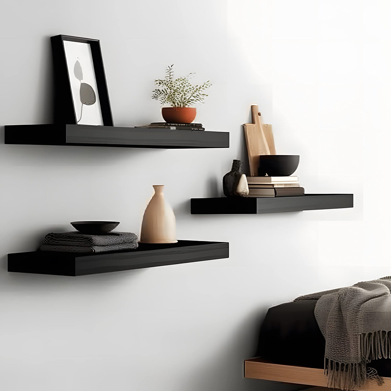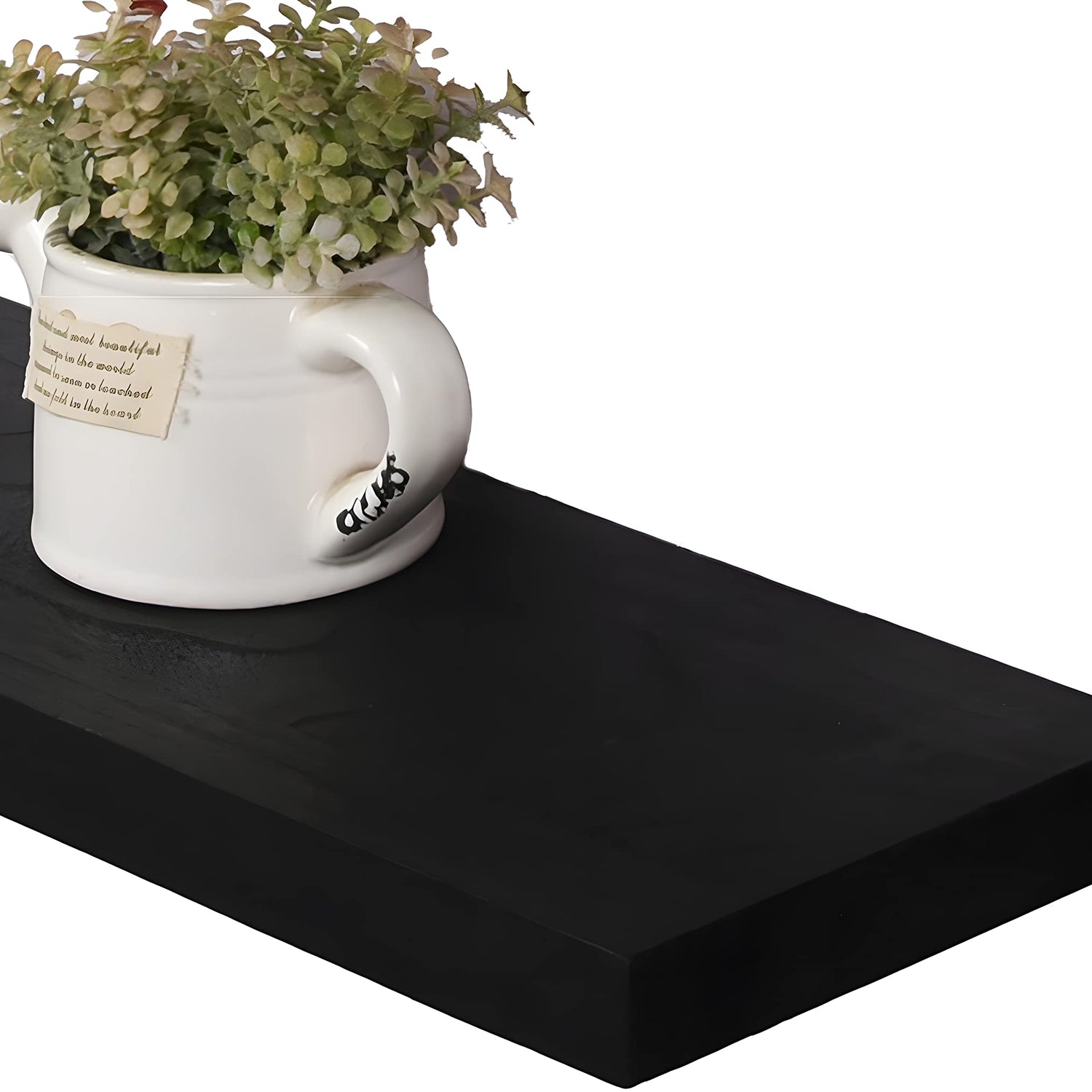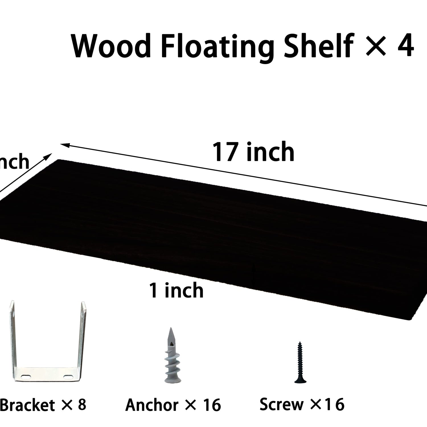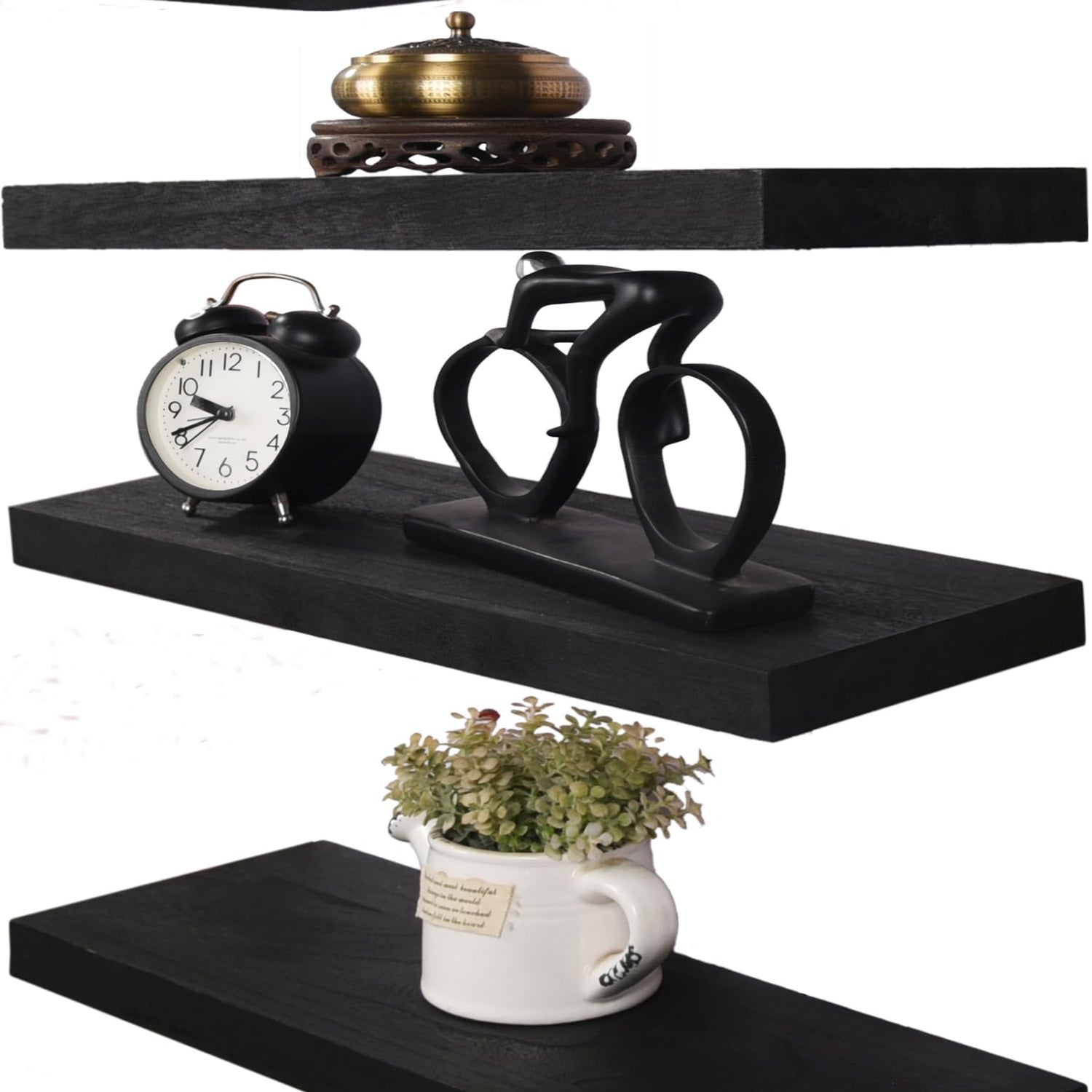 HXSWY Wood Floating Shelves for Wall, Wooden Wall Shelves for Bedroom, Wall Mounted Shelves for Living Room, Set of 4 Black