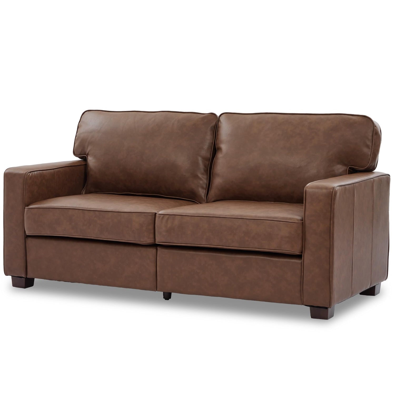 HXZDZ 66" PU Faux Leather Couch, Mid-Century Modern Loveseat Sofa with Solid Wood Legs for Living Room, Bedroom, Office, Brown