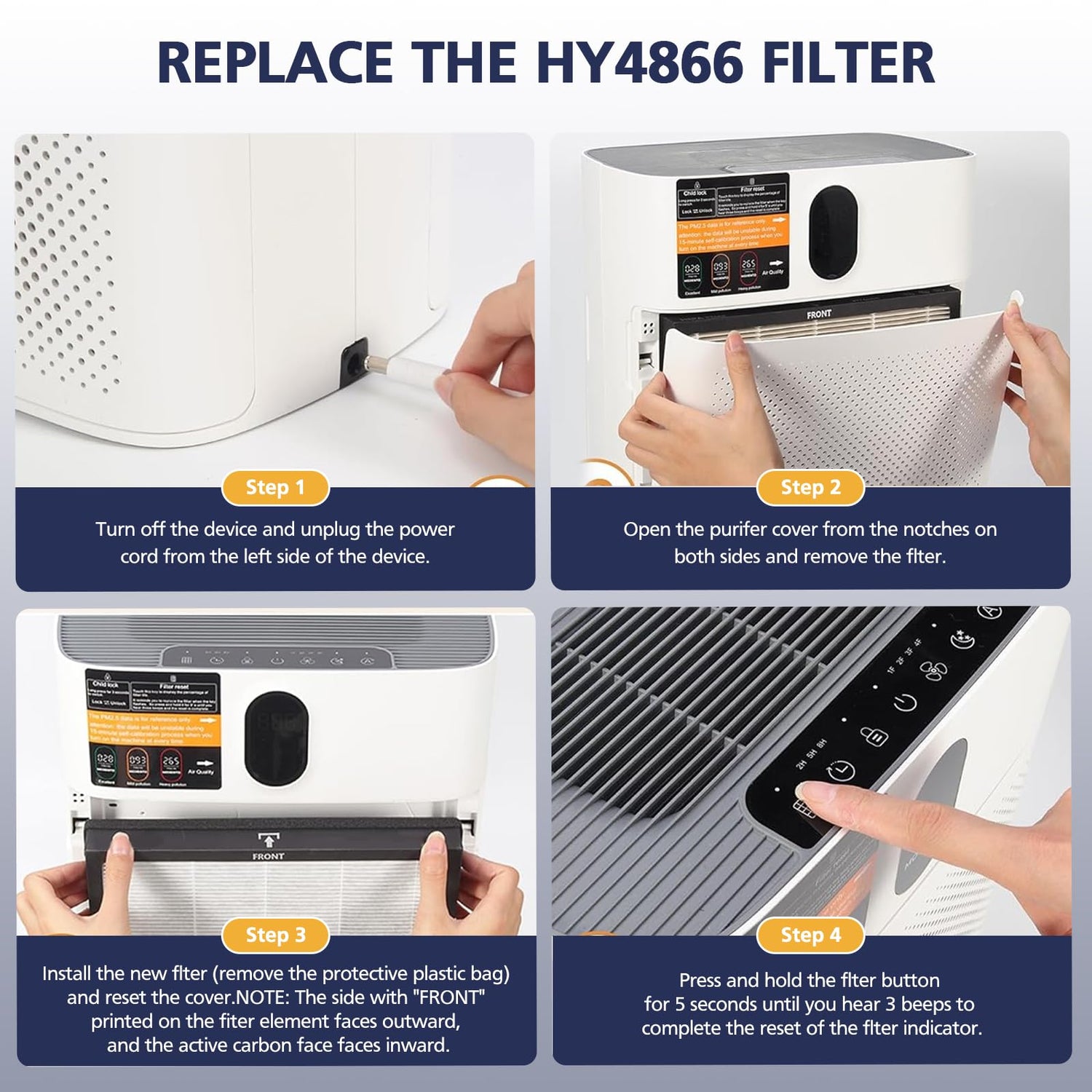- ใ๐๐๐๐ ๐ฃ๐๐ฅ๐๐ข๐ฅ๐ ๐๐ก๐๐ใEnjoy fresh air all year round with hy4866 air purifie-r replacement filter to ease uncomfortable symptoms caused by problematic air. H13 True HEPA Filter works alongside the Pre-Filter and High-Efficiency Activated Carbon Filter to attach pet dander, hair, and solve the problem of unpleasant odors and gases.
