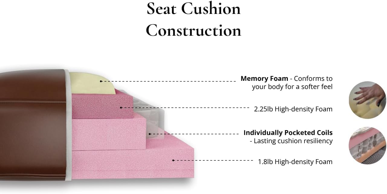 - Ultimate Comfort Seating: Pocketed coils, memory foam and 2.25lbs high-resiliency foam for the ultimate comfort. The back cushions are non-removable for a uniform look. The seat cushions are removable for easier cleaning and maintenance, and non-reversible to maintain their perfect fit and shape. Additionally, these seat cushions come with zip covers for added convenience and protection.