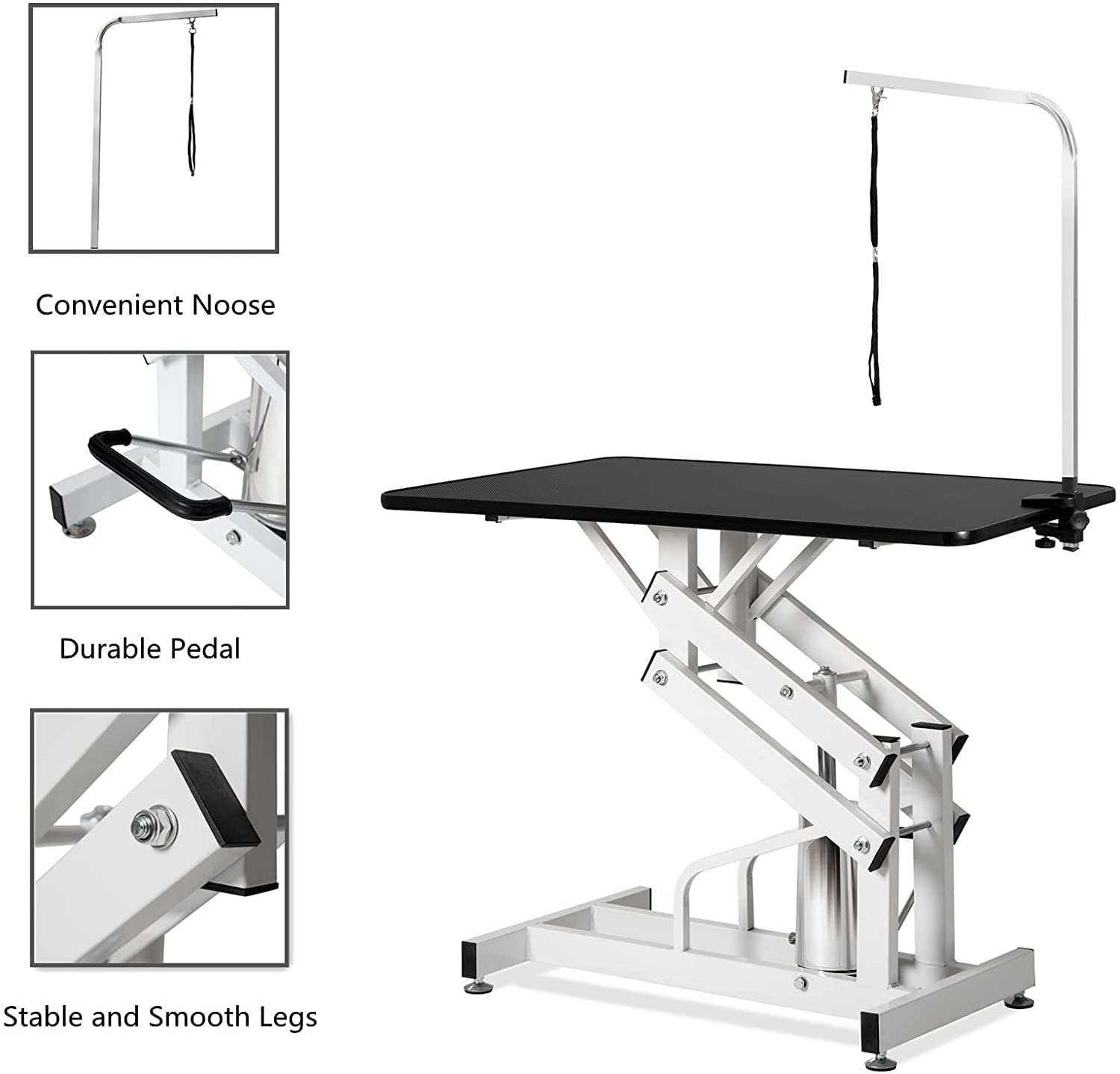 Hydraulic Dog Grooming Table for Small/Large Dogs, Heavy Duty Professional Pet Grooming Table with Adjustable Overhead Arm and Noose, Range 21-36 Inch, 43''/Black