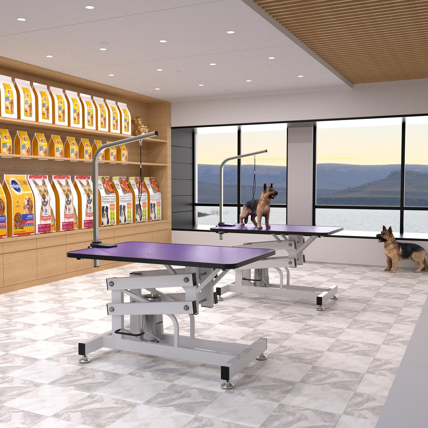 Hydraulic Dog Pet Grooming Table, 42 Inch Heavy Duty Z Lift Structure Professional Dog Grooming Table Suitable for Large Dogs at Home with Adjustable Arms, Clamps and 2 Grooming Noose, Purple