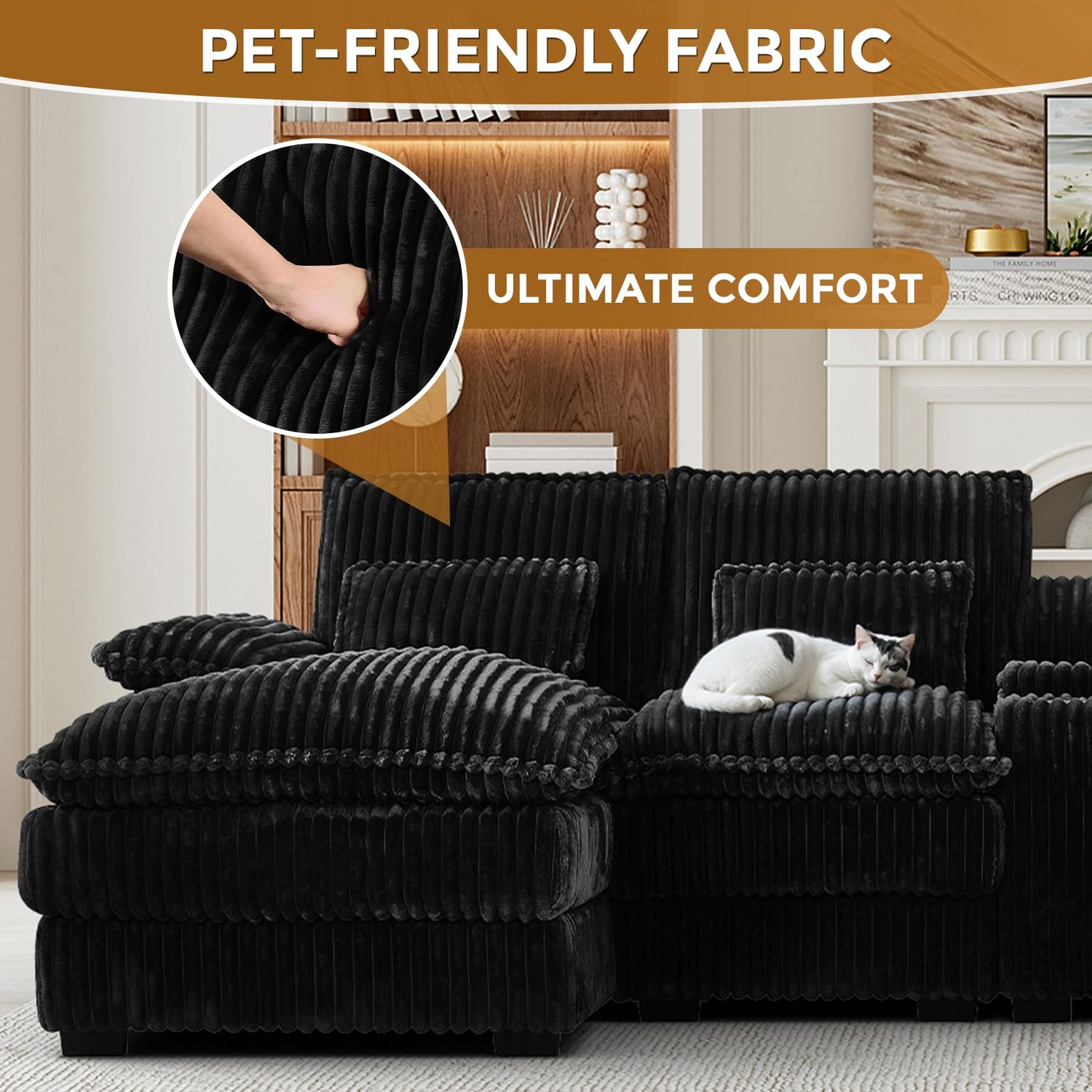 - 【Luxury Corduroy Couches for Living Room】Comfy Corduroy couches for living room boasts a Luxury modern style, Indulge in our our upgraded, wrinkle-resistant plush corduroy fabric, as soft as silk under your fingertips. This subtly opulent material balances softness and warmth, offering constant comfort. Its unique texture and soft sheen stand out, delivering gentle pampering, regardless of the season