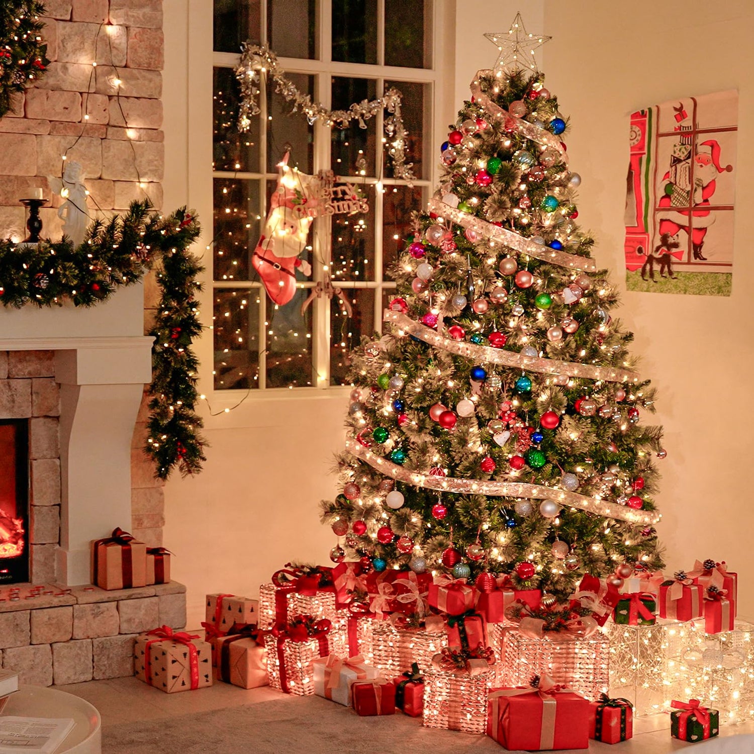 - HIGH QUALITY MATERIALS: The pre-lit bulbs that the Christmas tree used meet the strict UL standard, each bulb works independently, one burns out, other bulbs remain lit. The PVC material is also fire resistant and non-allergenic.