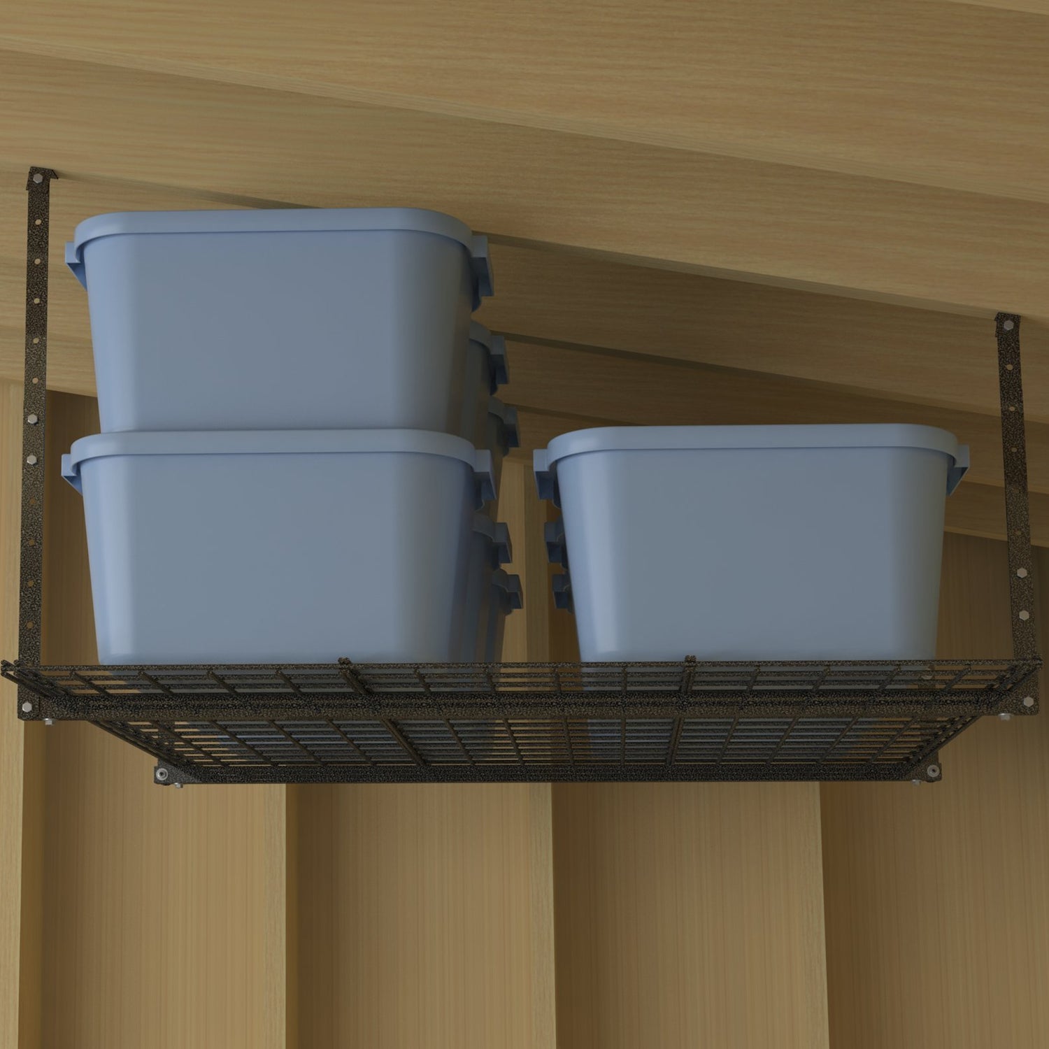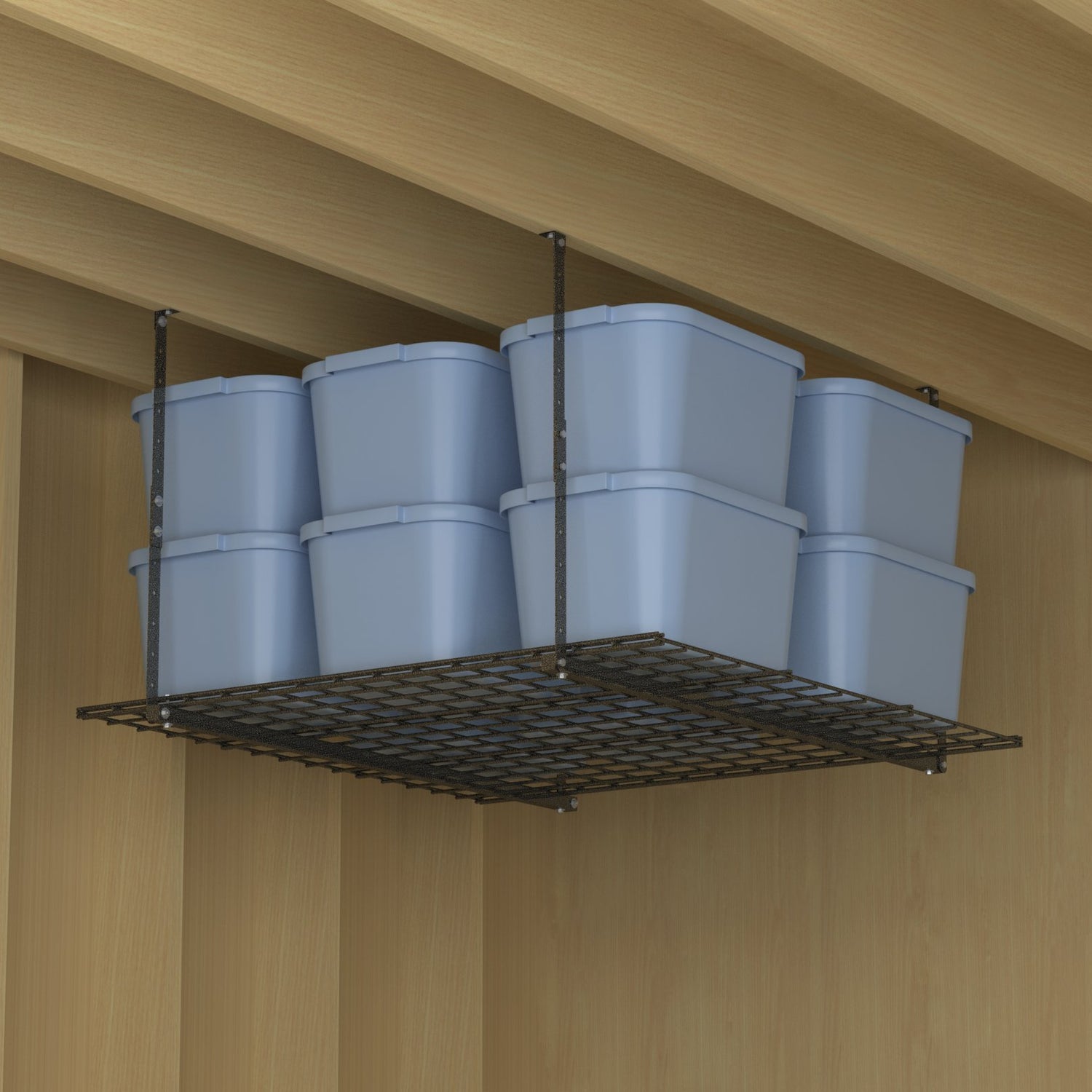- CEILING STORAGE: Great for garage organization, ceiling rack can hold bins, baskets and large items