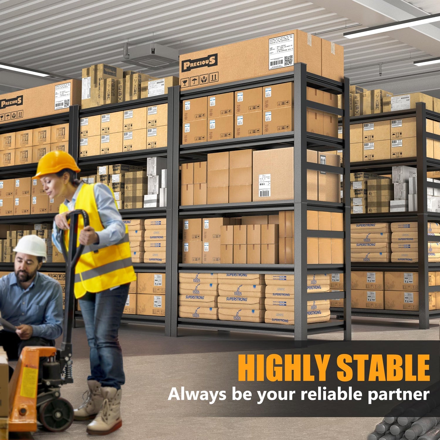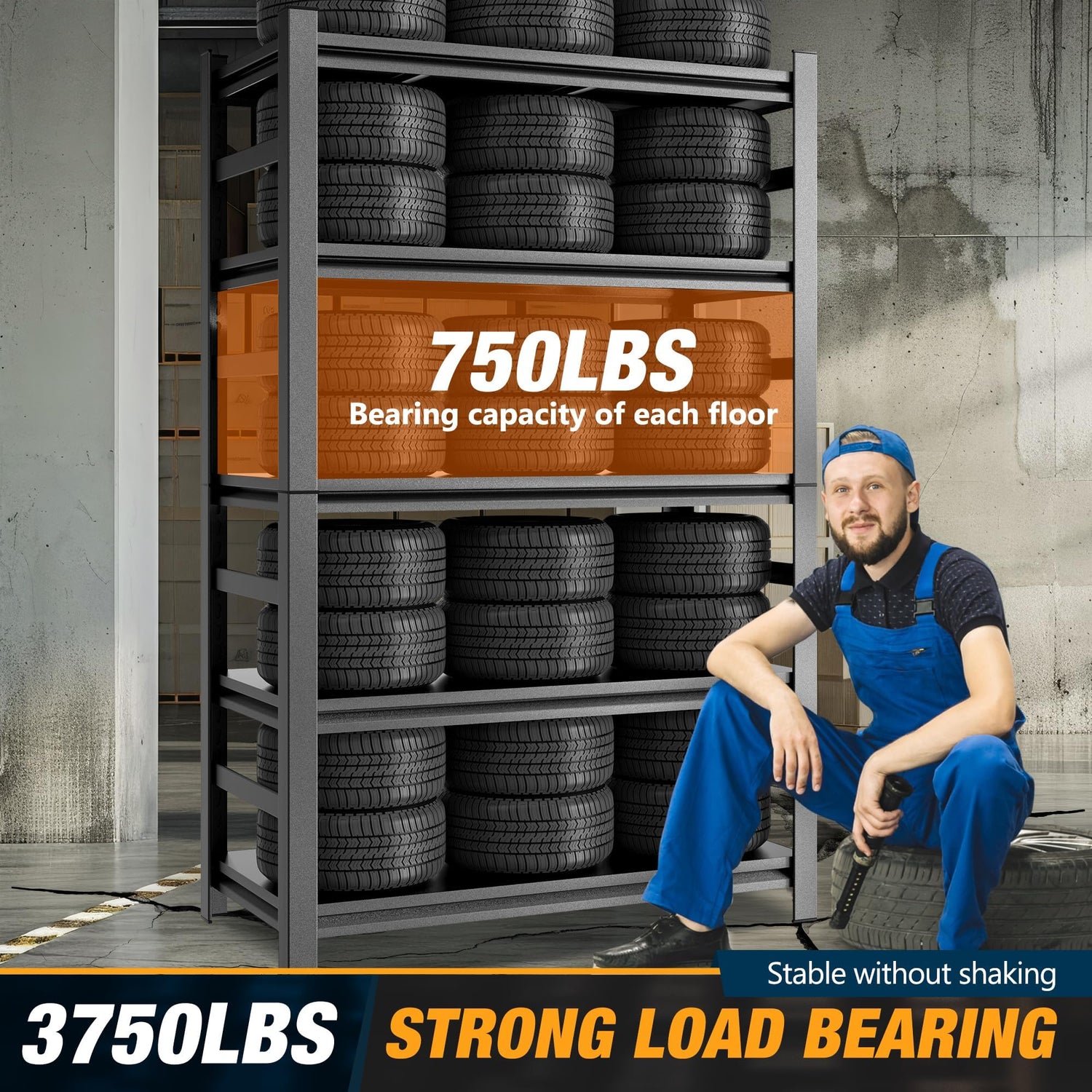 Details: Transform your storage with this 87-inch industrial-grade steel shelving unit (87"H x 47.3"W x 23.6"D), engineered for warehouses, garages, and basements. Featuring reinforced beams and a 1,000 lb/shelf capacity, it safely stores heavy tools, equipment, and bulk supplies. Five adjustable shelves customize to any item, while tool-free snap assembly installs in minutes. Safety pins lock shelves securely, and the matte black anti-rust coating resists moisture, scratches, and wear. The space-saving design maximizes vertical storage, with non-slip feet and an open grid for stability, visibility, and airflow. An industrial-strength solution for lifelong durability.