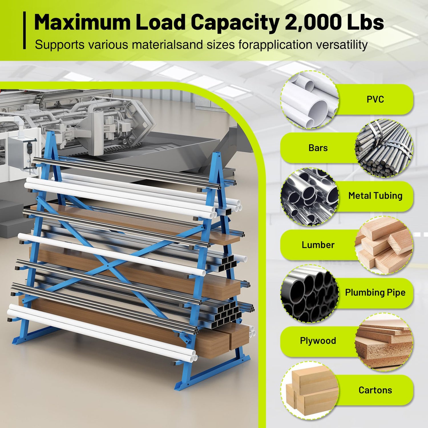 - Space-Saving Large Storage – Offers ample vertical storage without taking up excessive floor space. Easily combine multiple racks to store extra-long materials and customize shelving to meet your specific needs, perfect for garages, warehouses, and workshops.
