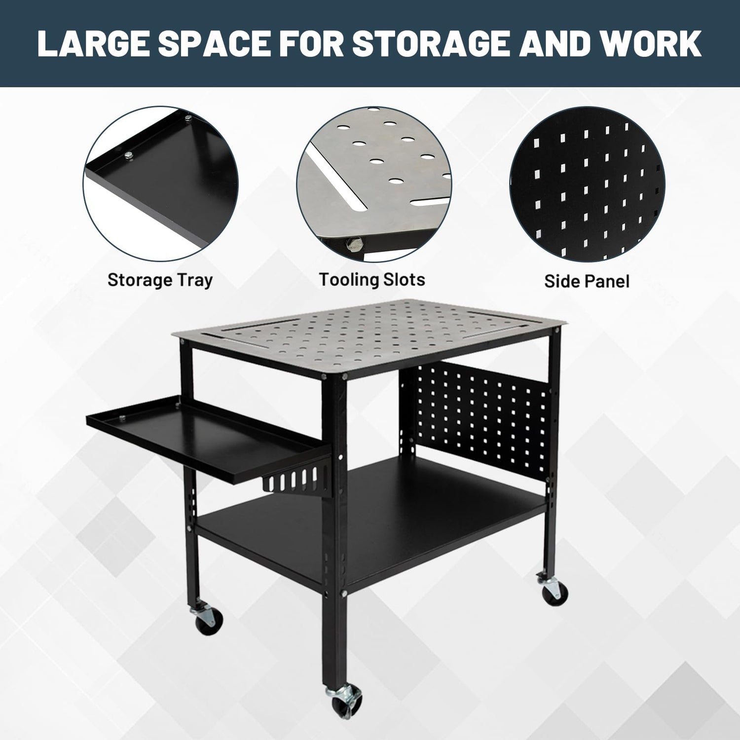 - Spacious Work Surfaces: Equipped with a generous 36" x 24" table board, providing ample space for a wide range of workshop tools, with the help of the weld table, it becomes easier to deal with complex parts.
