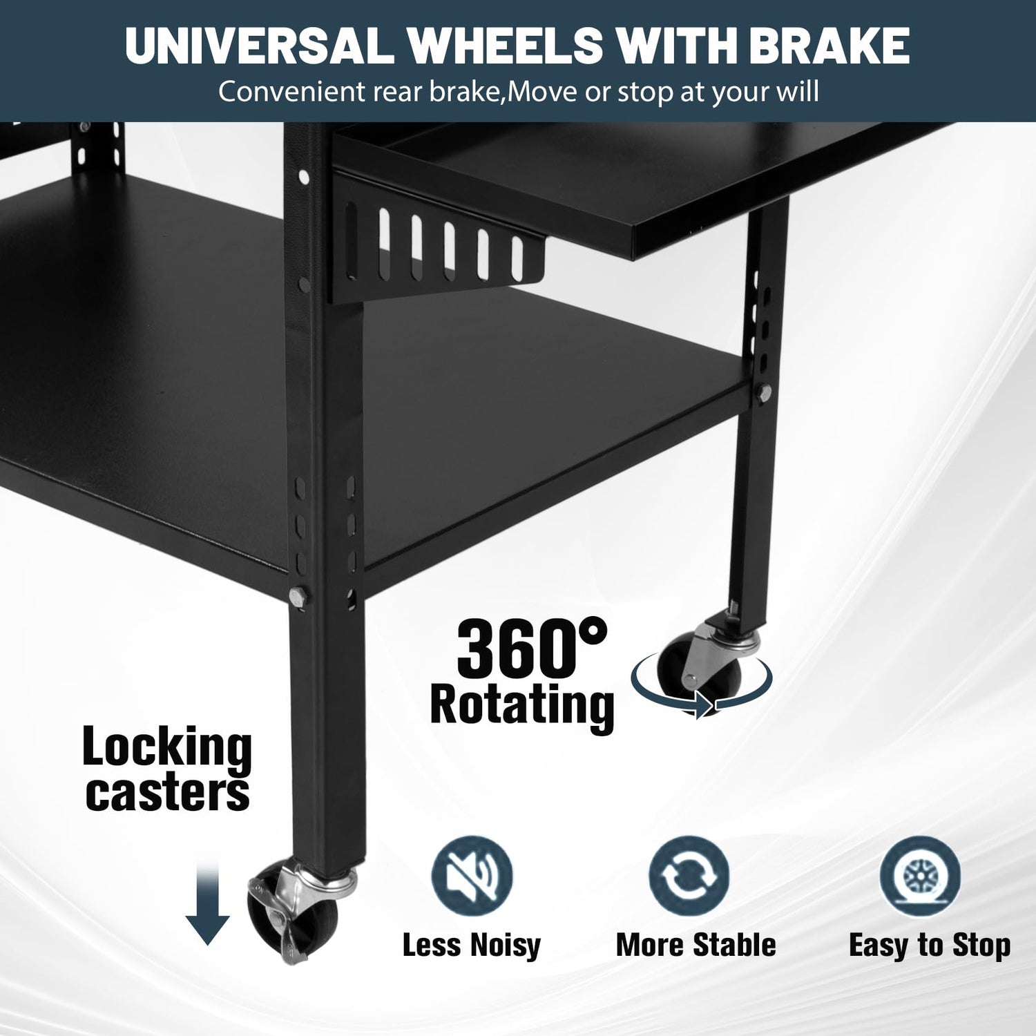 - Swivel Casters: There are four sturdy rollers at the bottom allow you to move it wherever you want at any time, and the locking casters hold the welding tabl firmly in place for added stability. In addition, with special design and instruction manual, the workbench can be assembled easily.