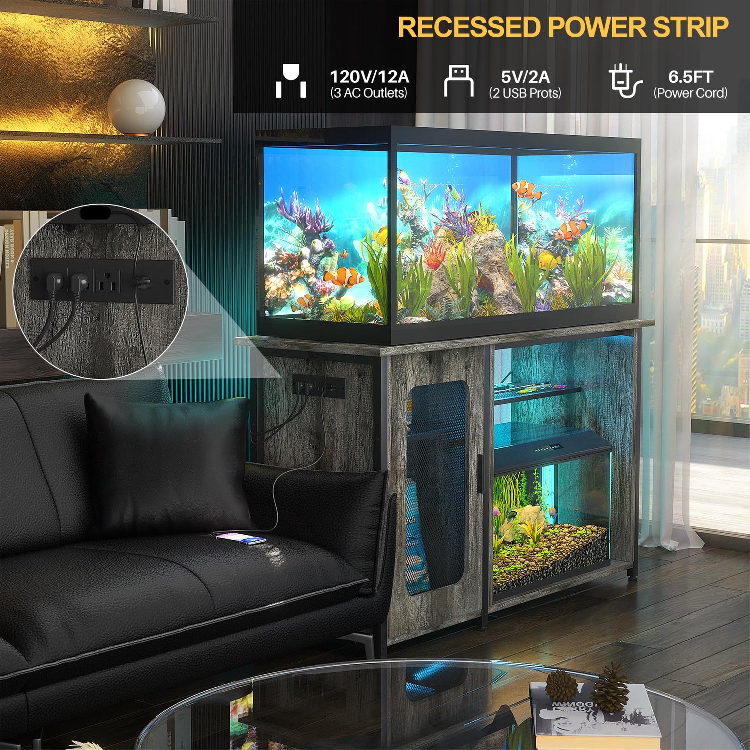 - Magic Power Outlets & USB Charging Ports: The Fish Tank Stand includes a built-in power strip with 3 outlets & 2 USB Ports, which provides convenience for charging heater rods, filters, LED lights, and other devices, avoiding cluttered wires, simplifying your fish tank management.
