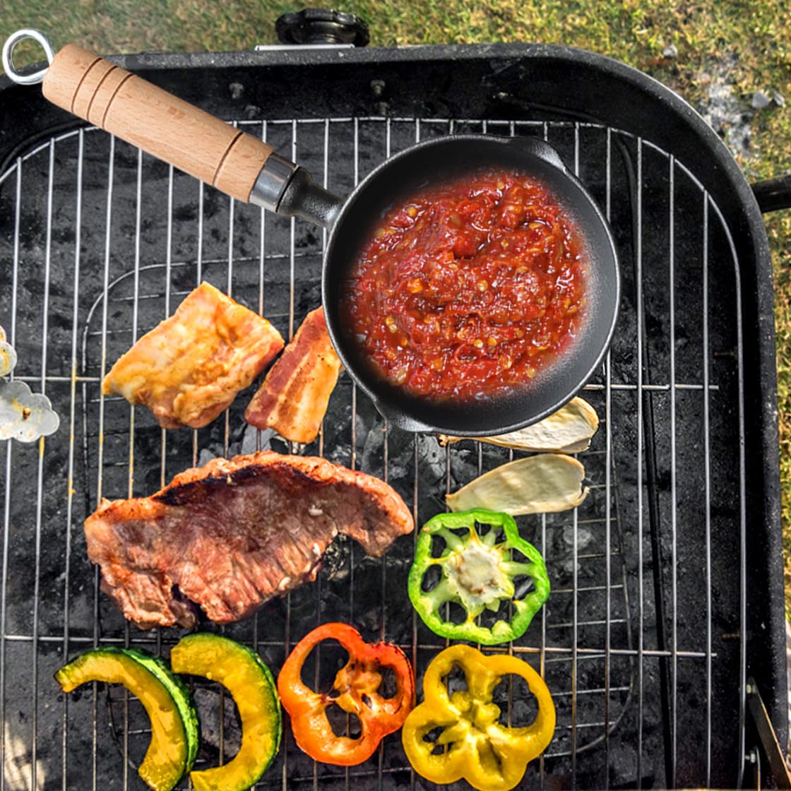 HyzaPhix Cast Iron Sauce Pot and BBQ Mop Brush Set for Grilling, BBQ Basting Set with Saucepan and Brush Barbecue Accessories Meat Smoker Accessories Gift for Men (Black)