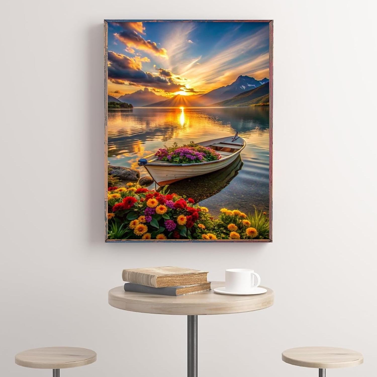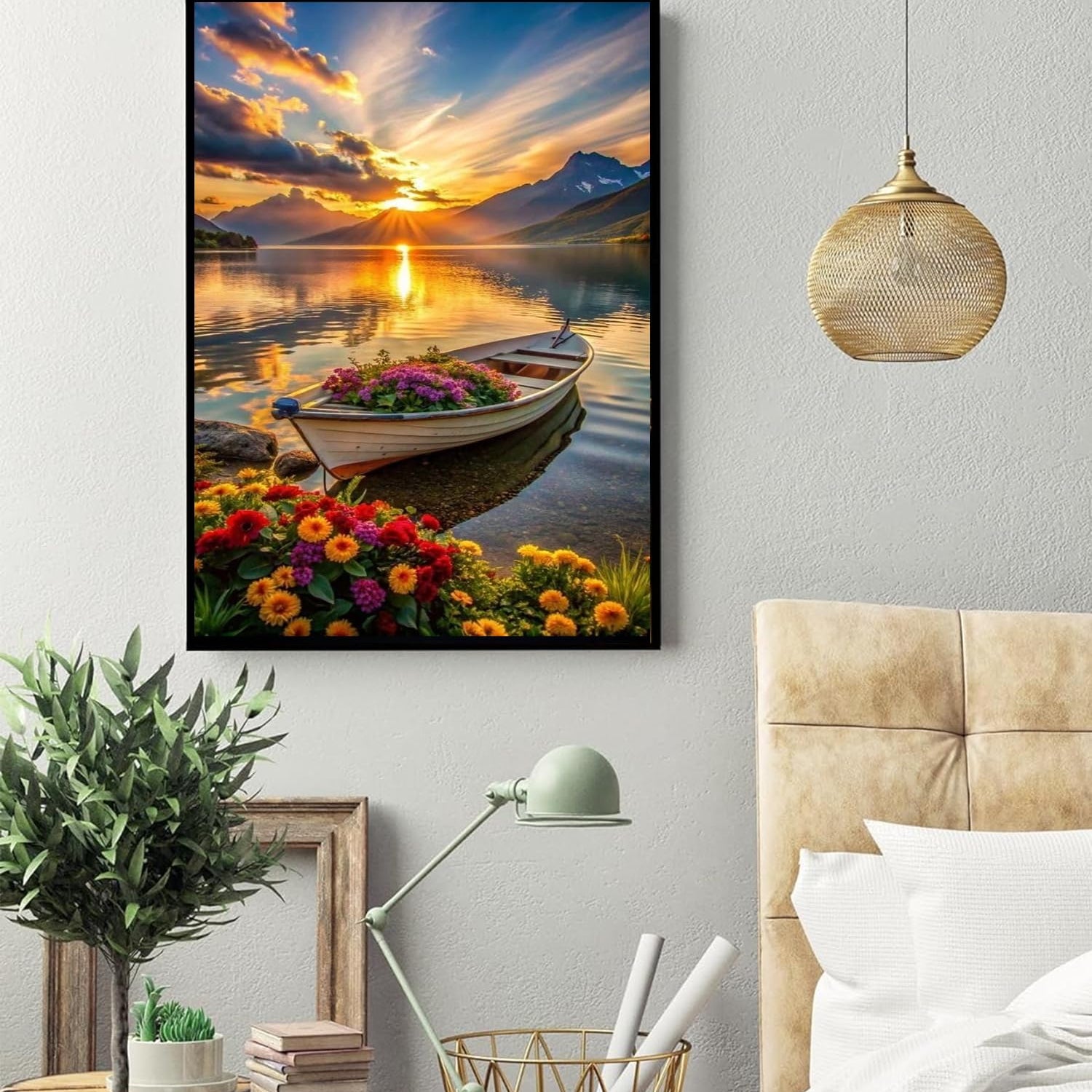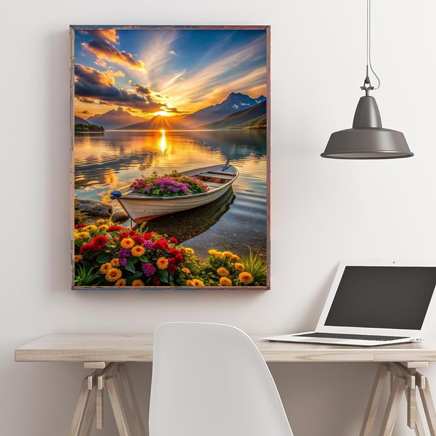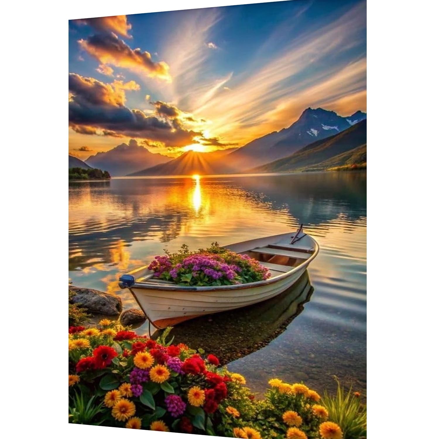 hyzsj 5D Lake Boat Diamond Art Painting,Large Diamond Painting Kits for Adults Sunset,DIY Full Drill Crystal Rhinestone Arts,Gem Art Painting with Diamond Home Wall Decor(27.5 X 15.7inch)