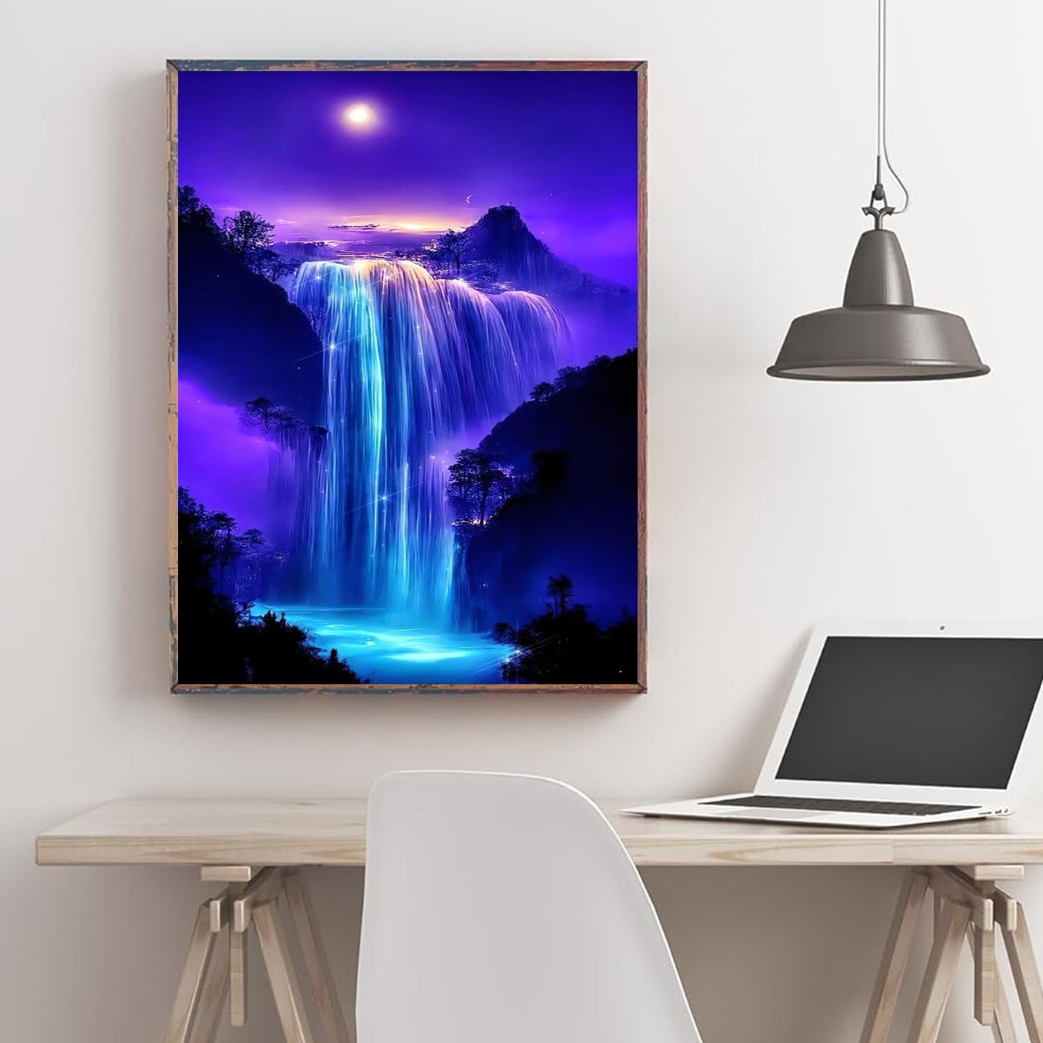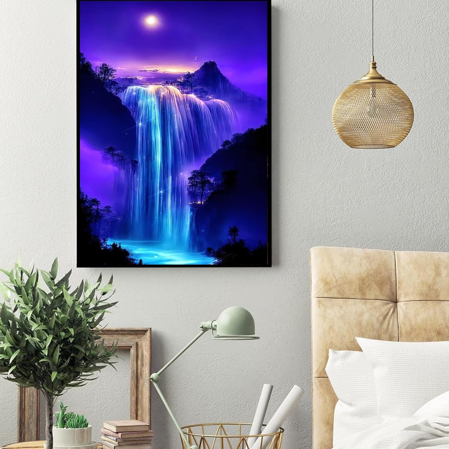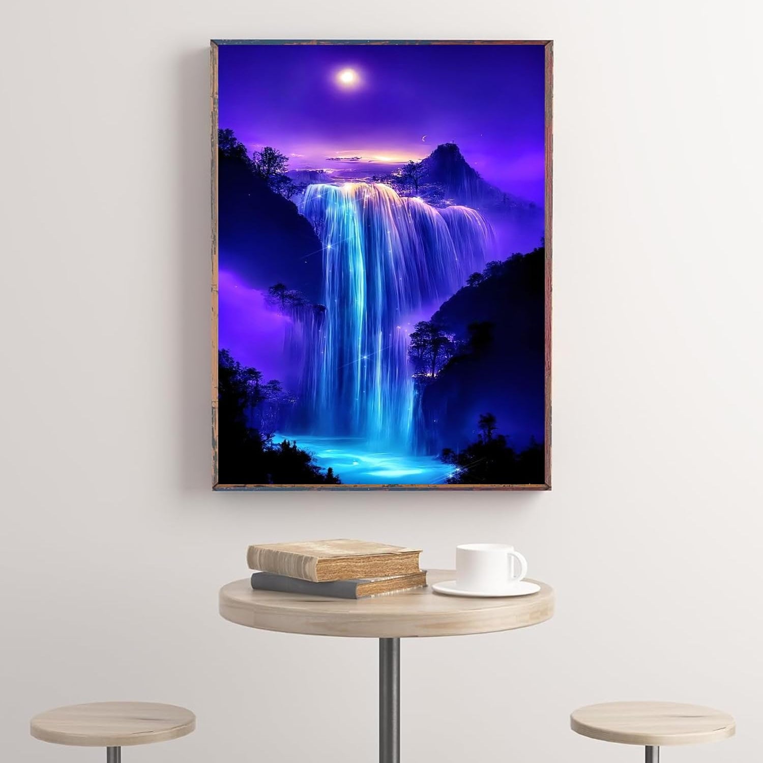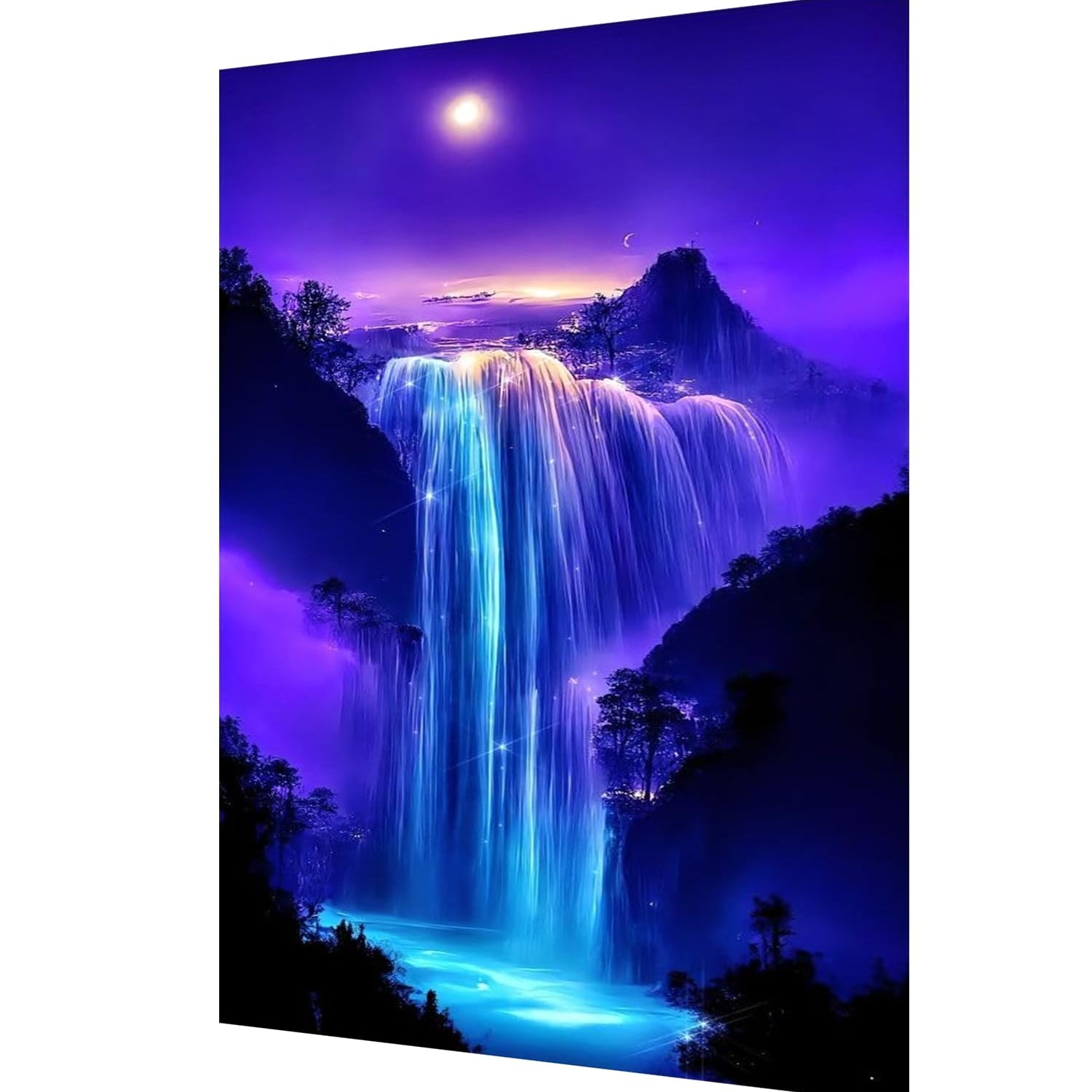 hyzsj 5D Waterfall Diamond Art Painting,Large Diamond Painting Kits for Adults,DIY Full Drill Crystal Rhinestone Arts,Gem Art Painting with Diamond Home Wall Decor Mountain Moon(27.5 X 15.7inch)