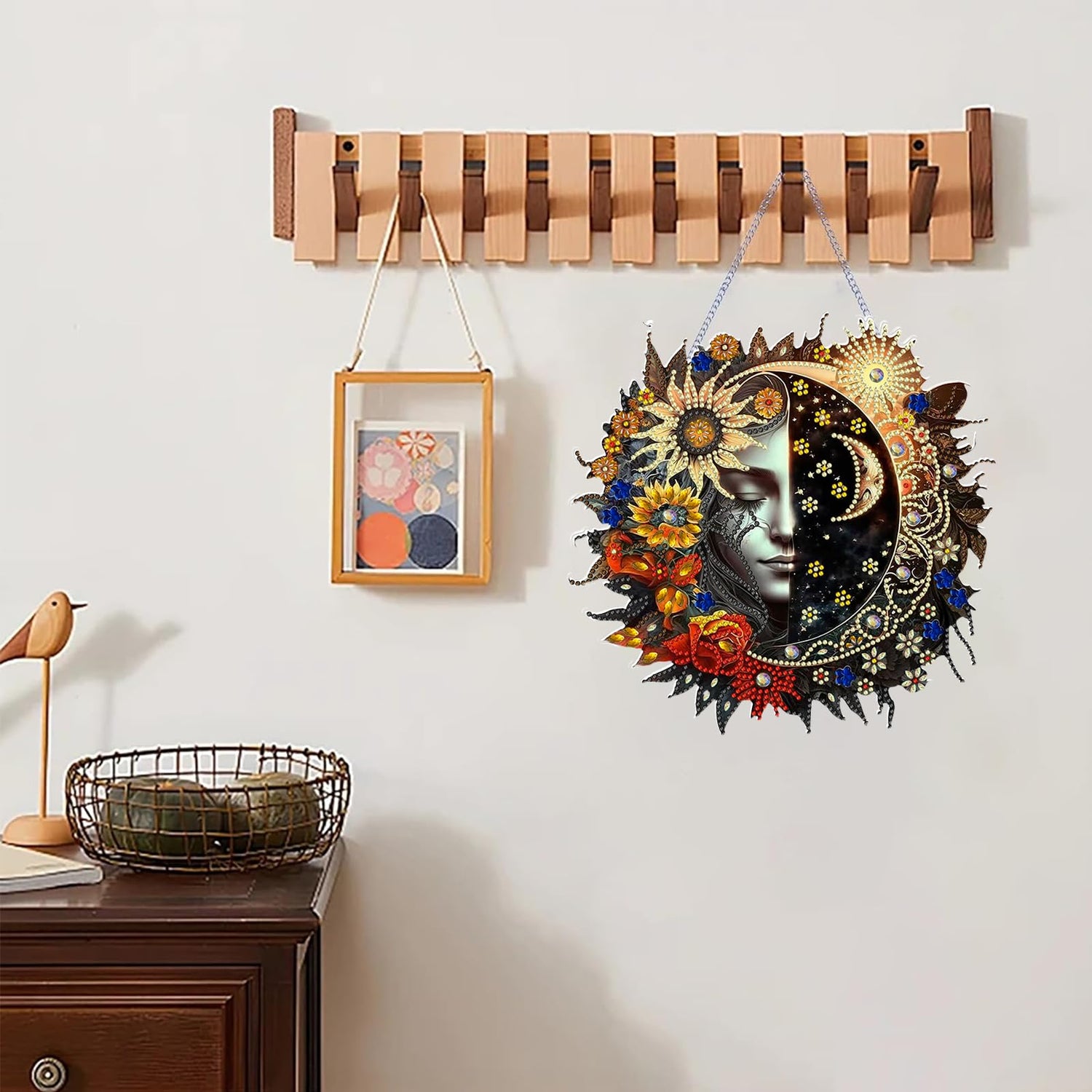 hyzsj DIY Hanging Diamond Art Pendant Painting Kit Sun Moon, Special Crystal Gem Craft Painting Kit Ornament 9.8x9.8inch