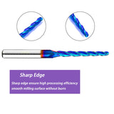 HZBIAO 1 Degree Tapered Ball Nose CNC Router Bits End Mills Solid Carbide Spiral Up Cut 2D&3D Carving bits 1/4 Inch Shank with 1/8 Diameter Overall