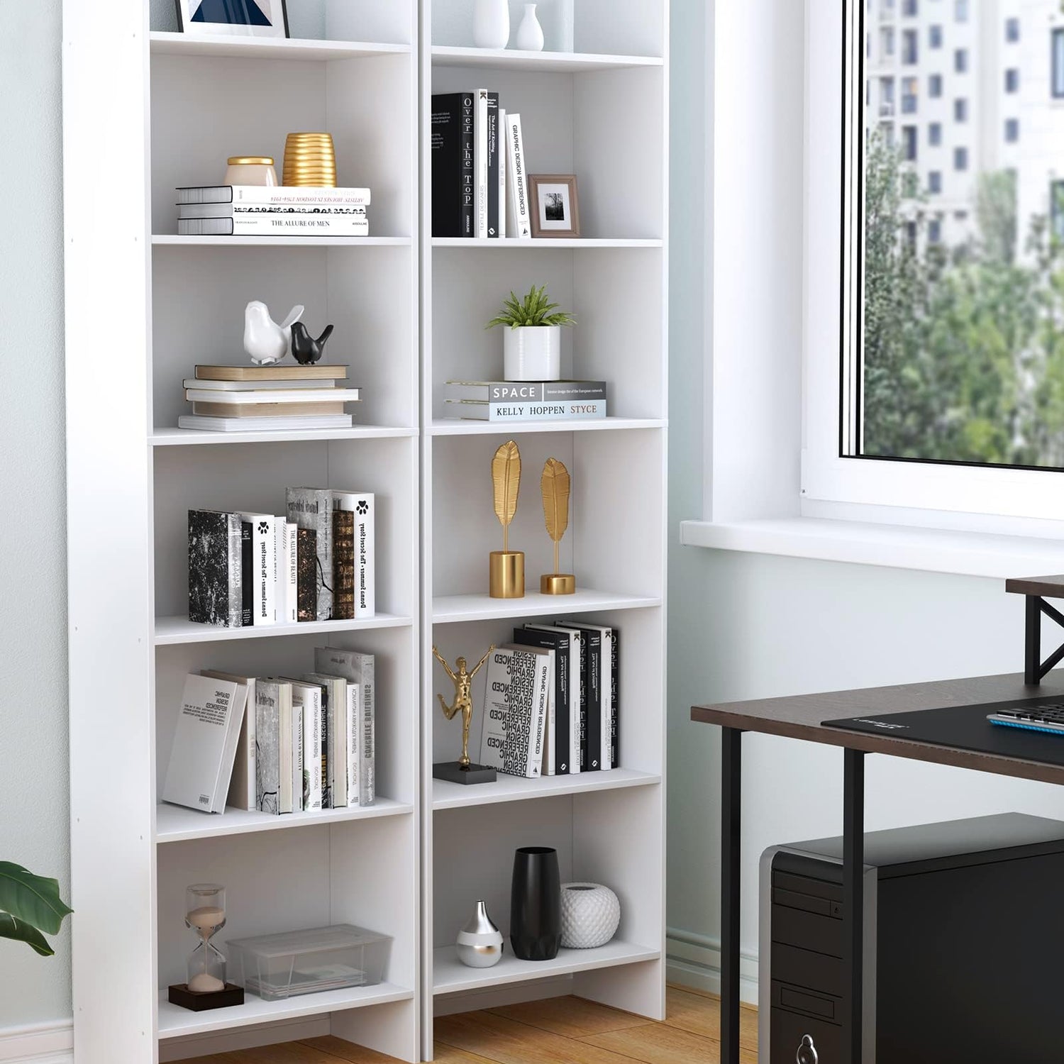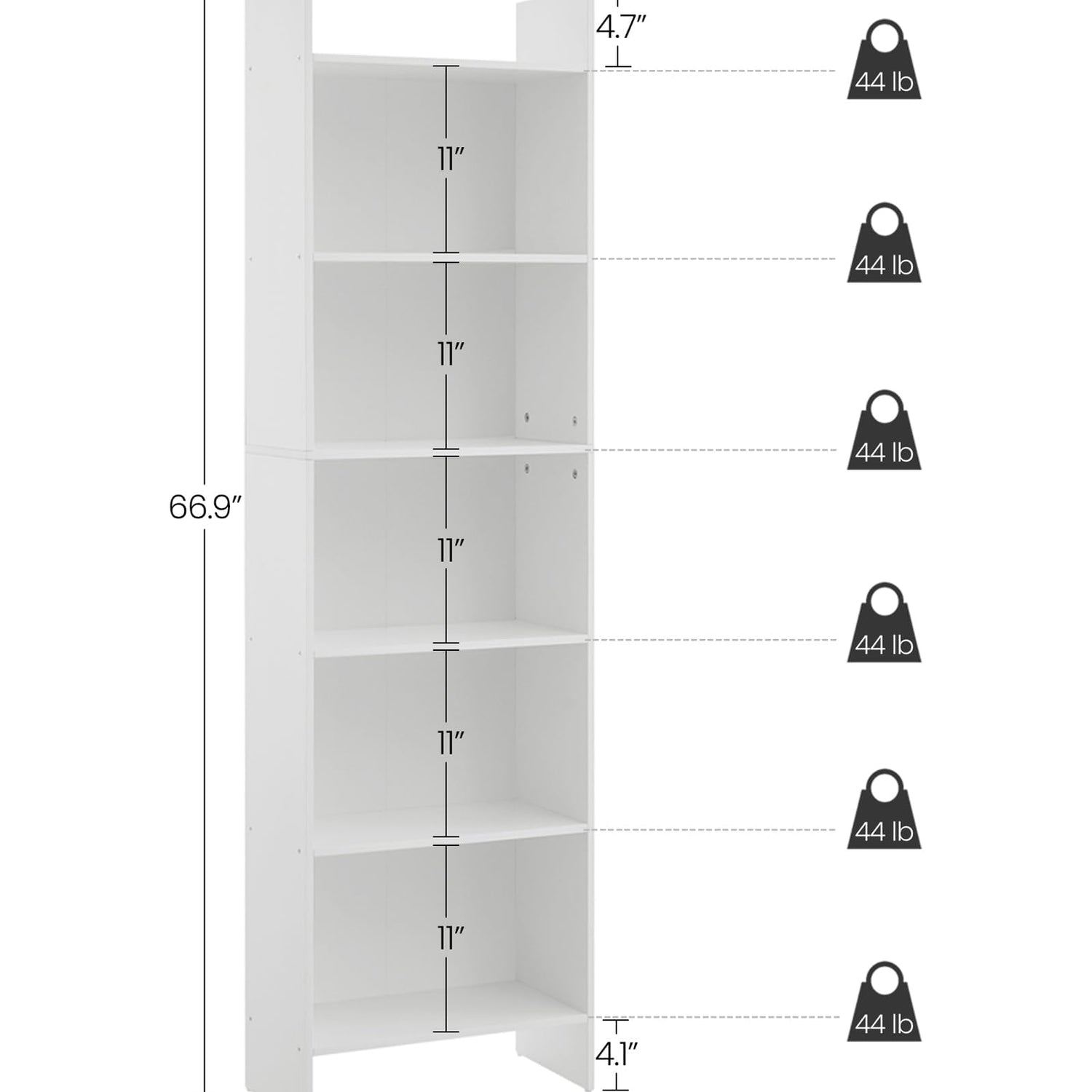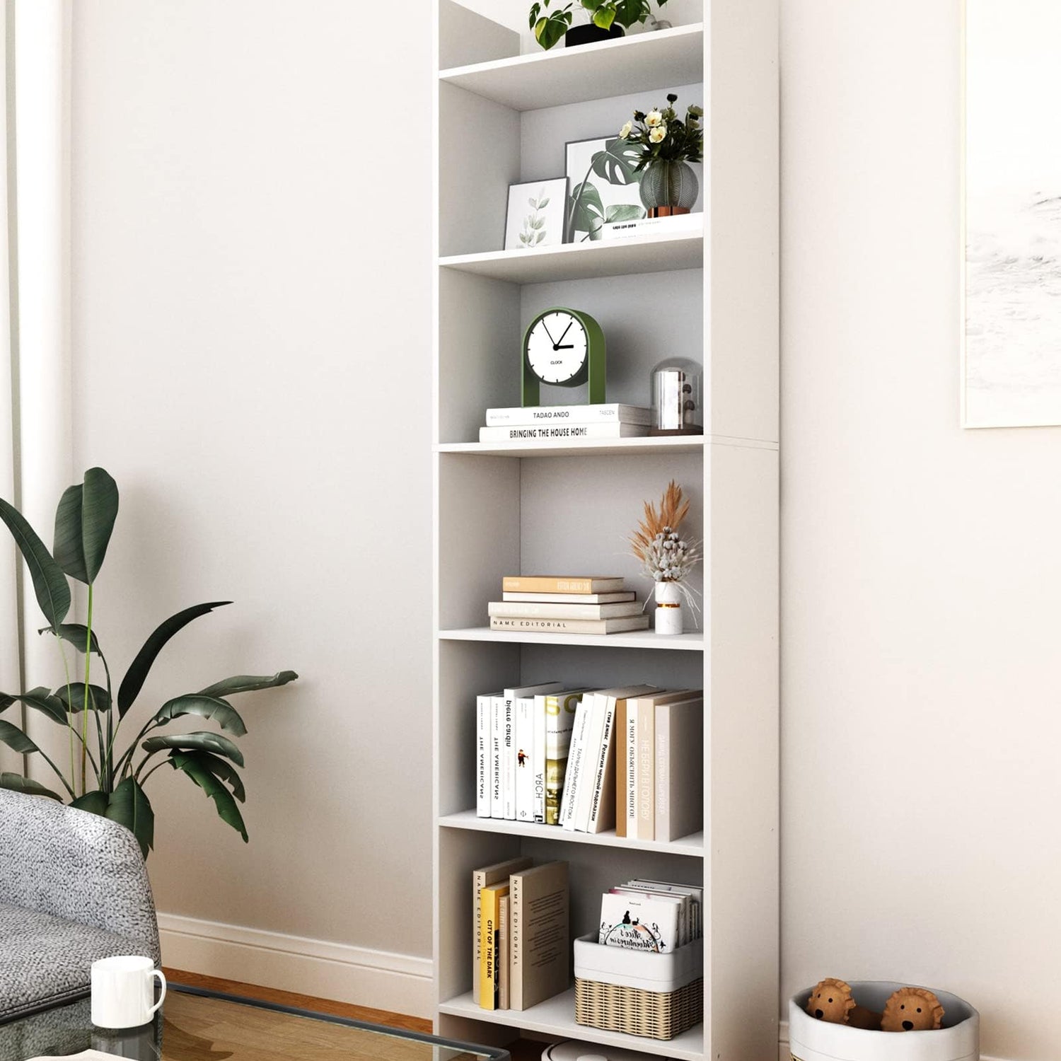 Hzuaneri 6-Tier Bookshelf, 66.9 Inches Floor Standing Bookcase, Display Storage Shelf, Corner Shelf, Home Decor Furniture for Home Office, Living Room, Bedroom, White 01103XBC