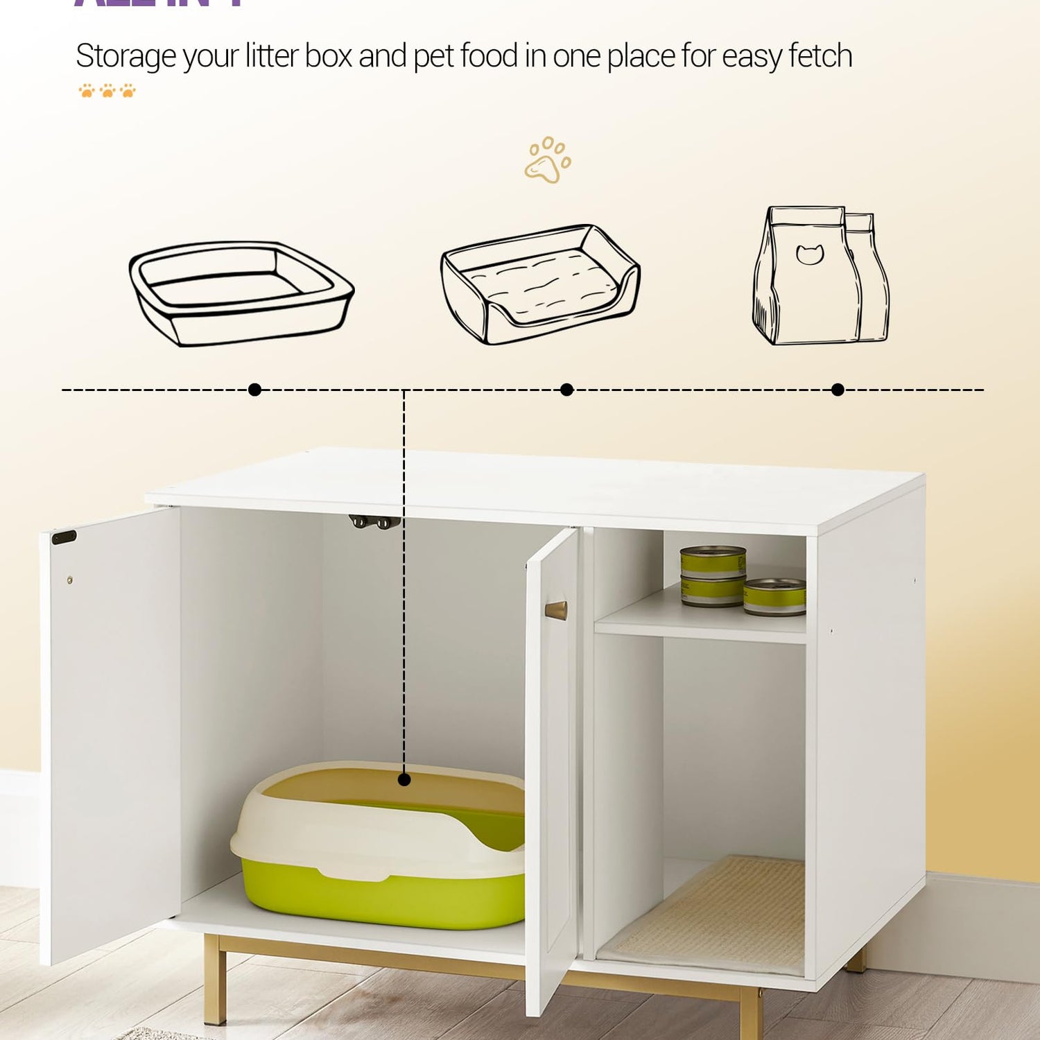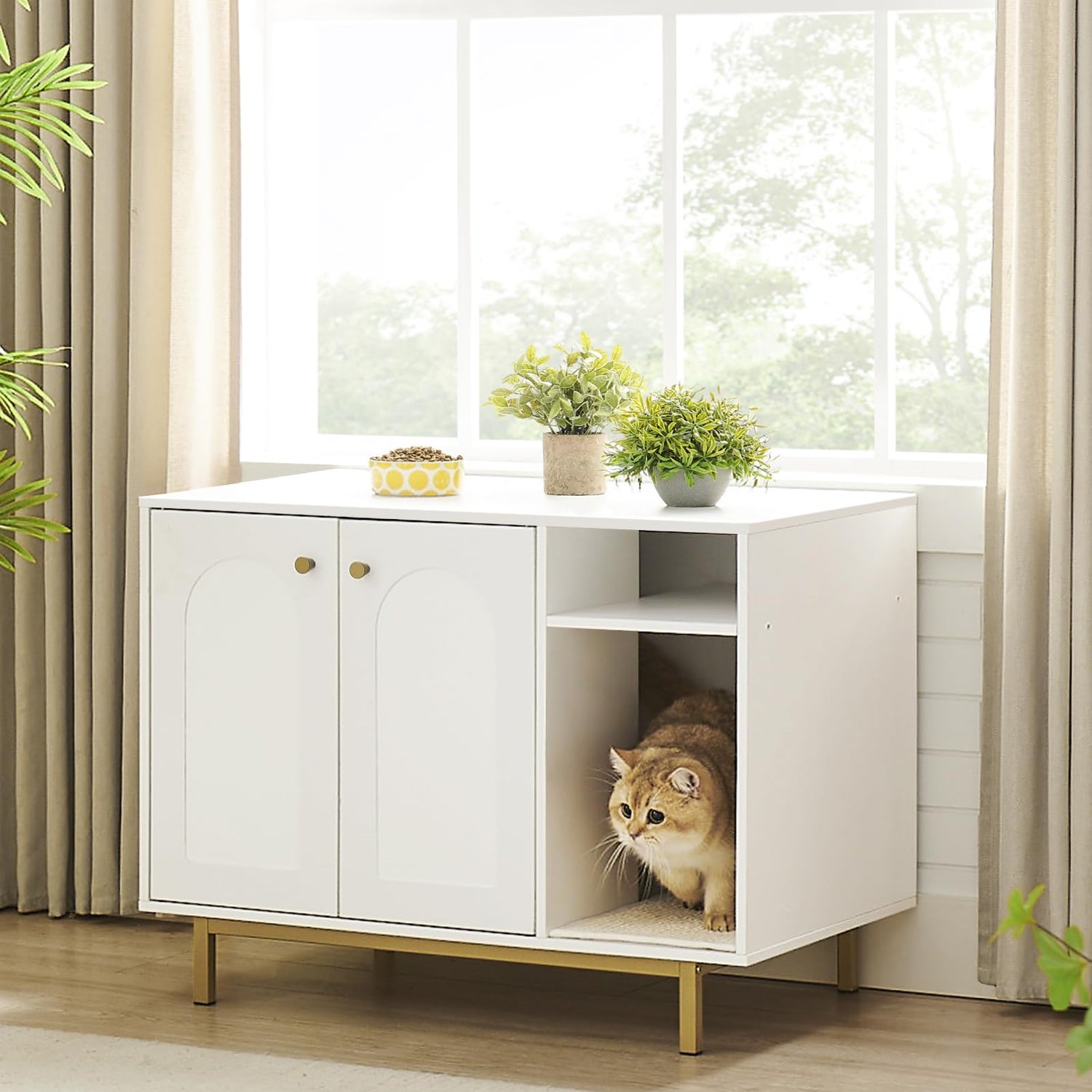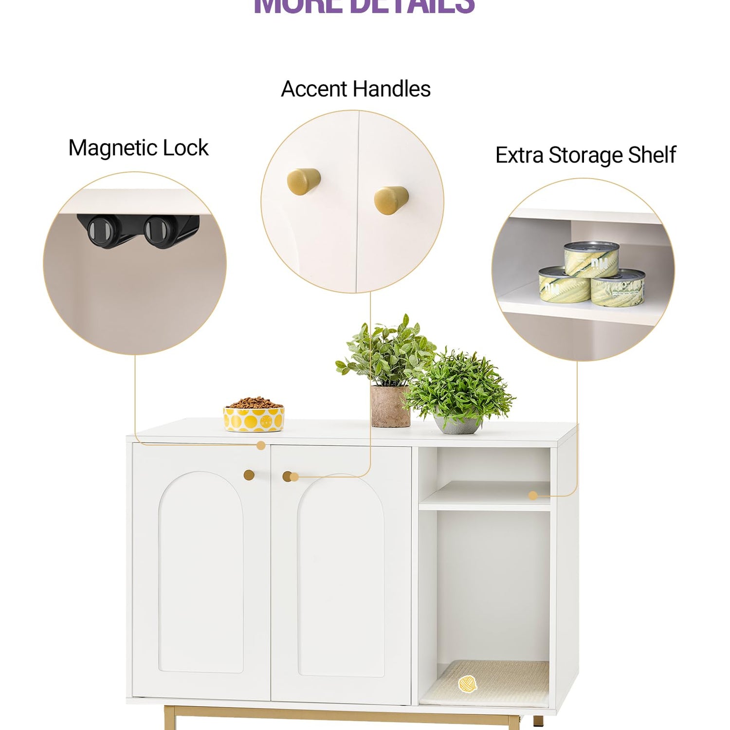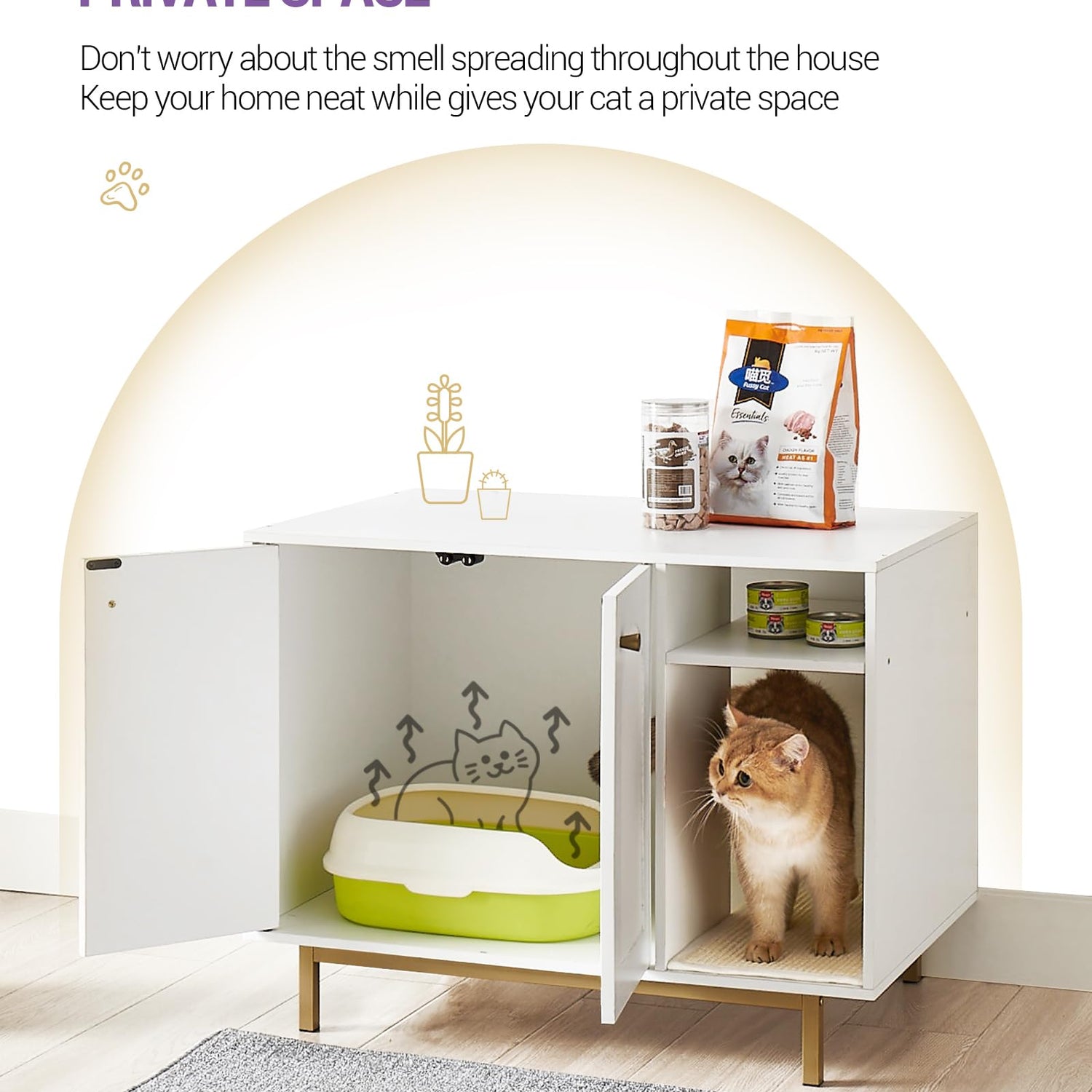 - Multi-Function Cat House: Perfect night stand hides your cat’s litter box, stylish white and gold furniture look complements with your home decor