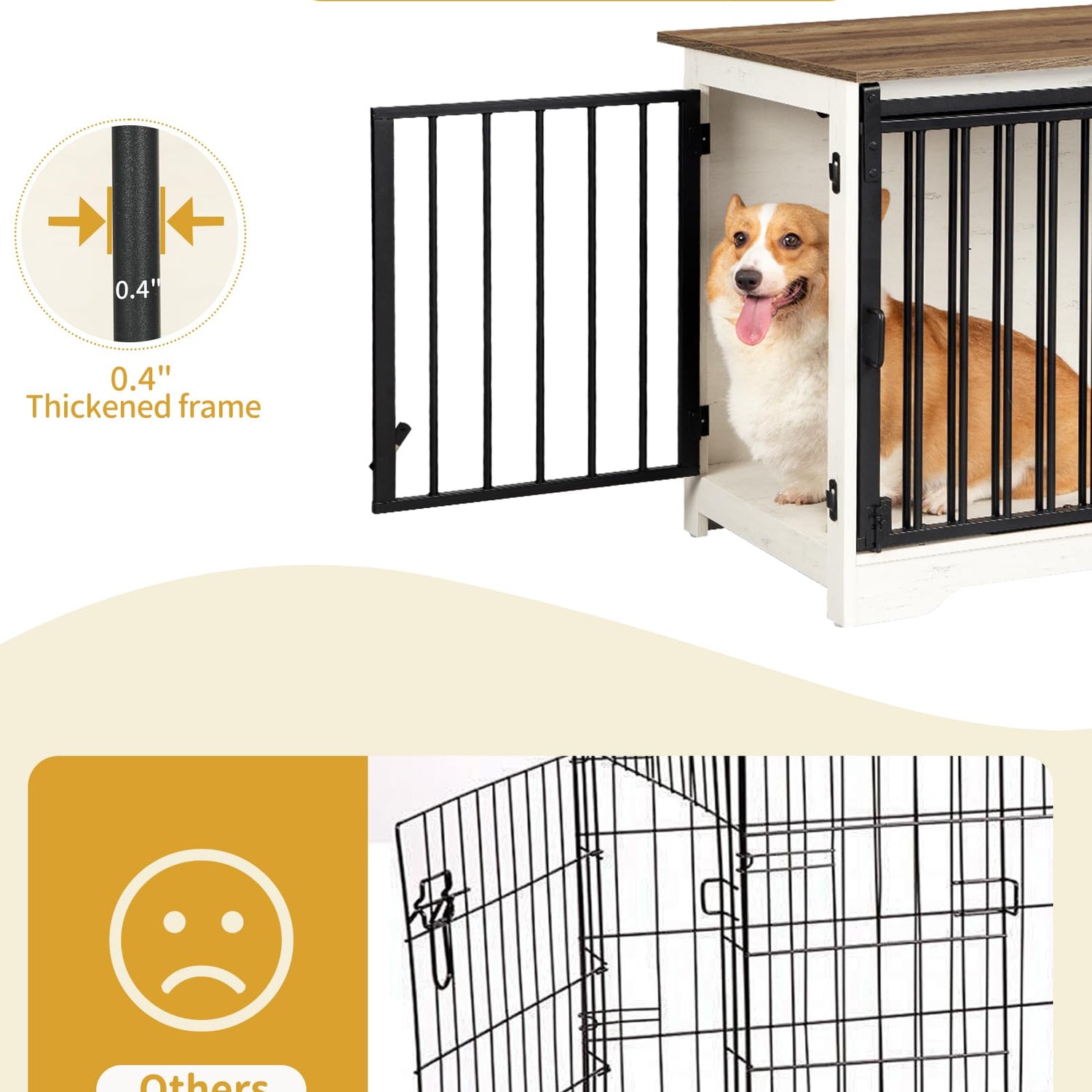 - Anti-Chew & Anti-Escape: We understand the importance of keeping your furry friend safe. That's why our dog kennel furniture is designed to be anti-chew and anti-escape. The edges of the boards are not exposed to the dog to avoid chewing on the boards, 0.4-inch steel tubes and double welded points make this large dog crate chew-proof and escape-proof!
