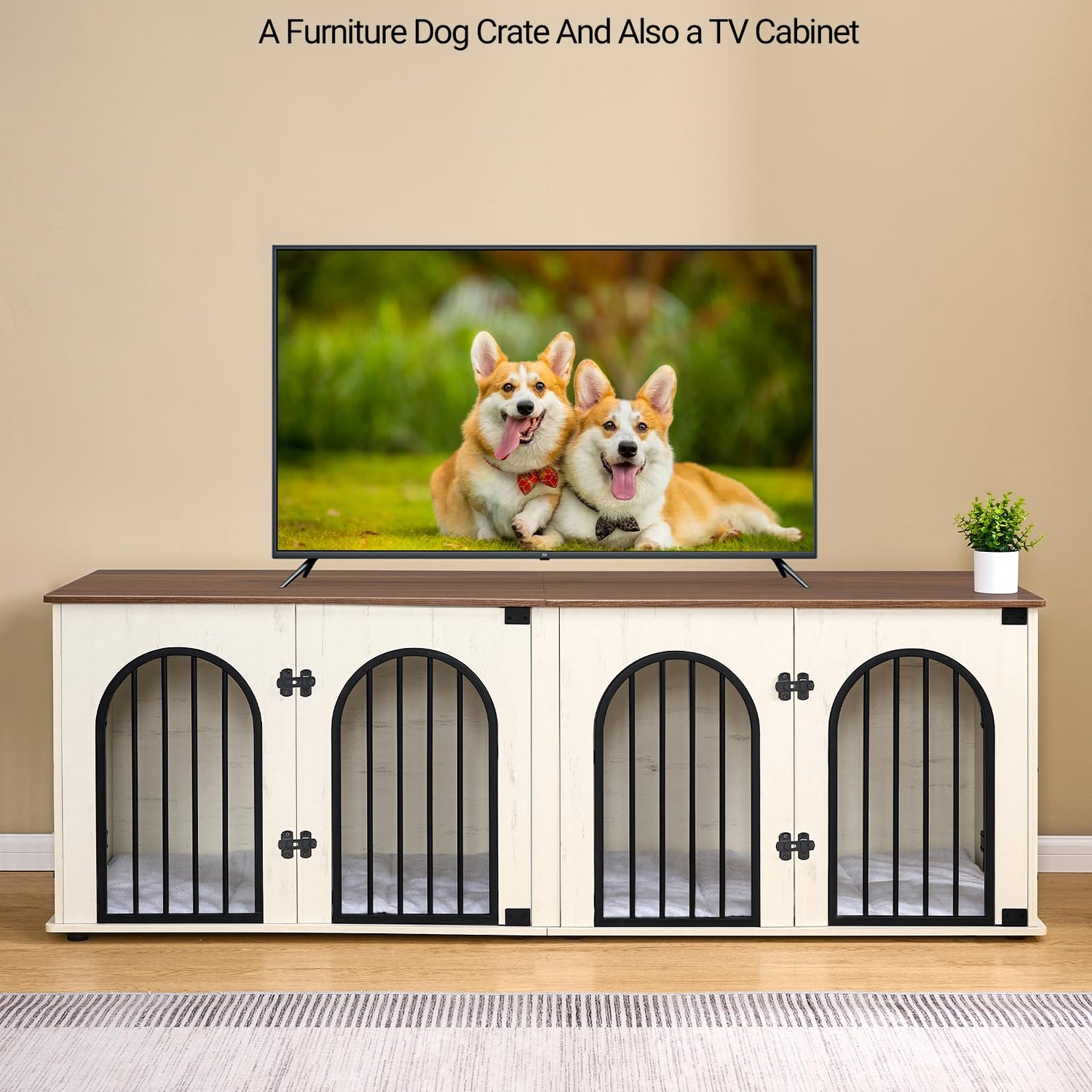 - 🐶Wide Application: Our 2 dog crate furniture stands out with its stylish shape. It serves as more than just a dog crate, it also uses as a TV cabinet, end table and bedside table, blending seamlessly into your living room or bedroom decor.