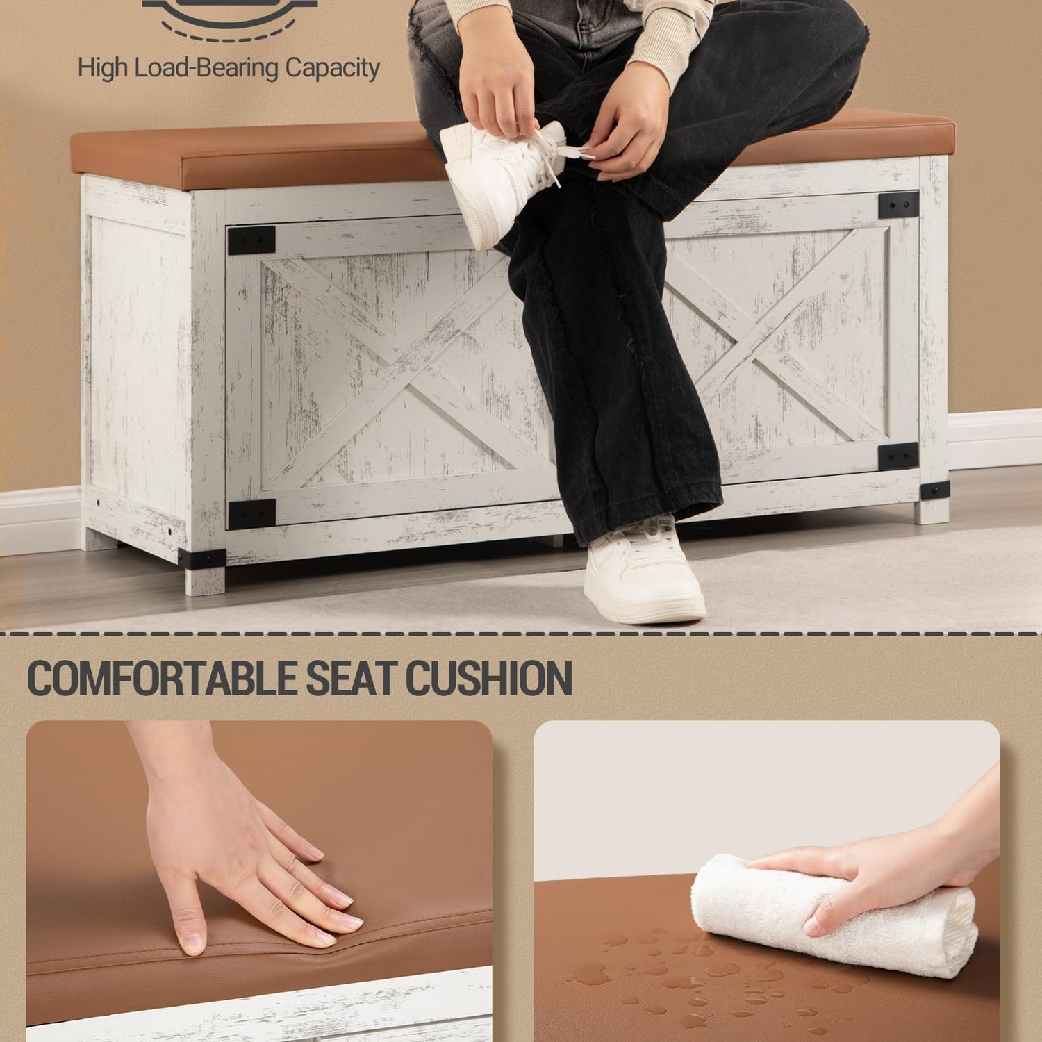 - [Farmhouse Style Design] The shoe changing stool is equipped with two farmhouse barn doors and cushioned seats with classical farmhouse elements. It has natural variations in texture, color, and texture, suitable for different home decoration styles