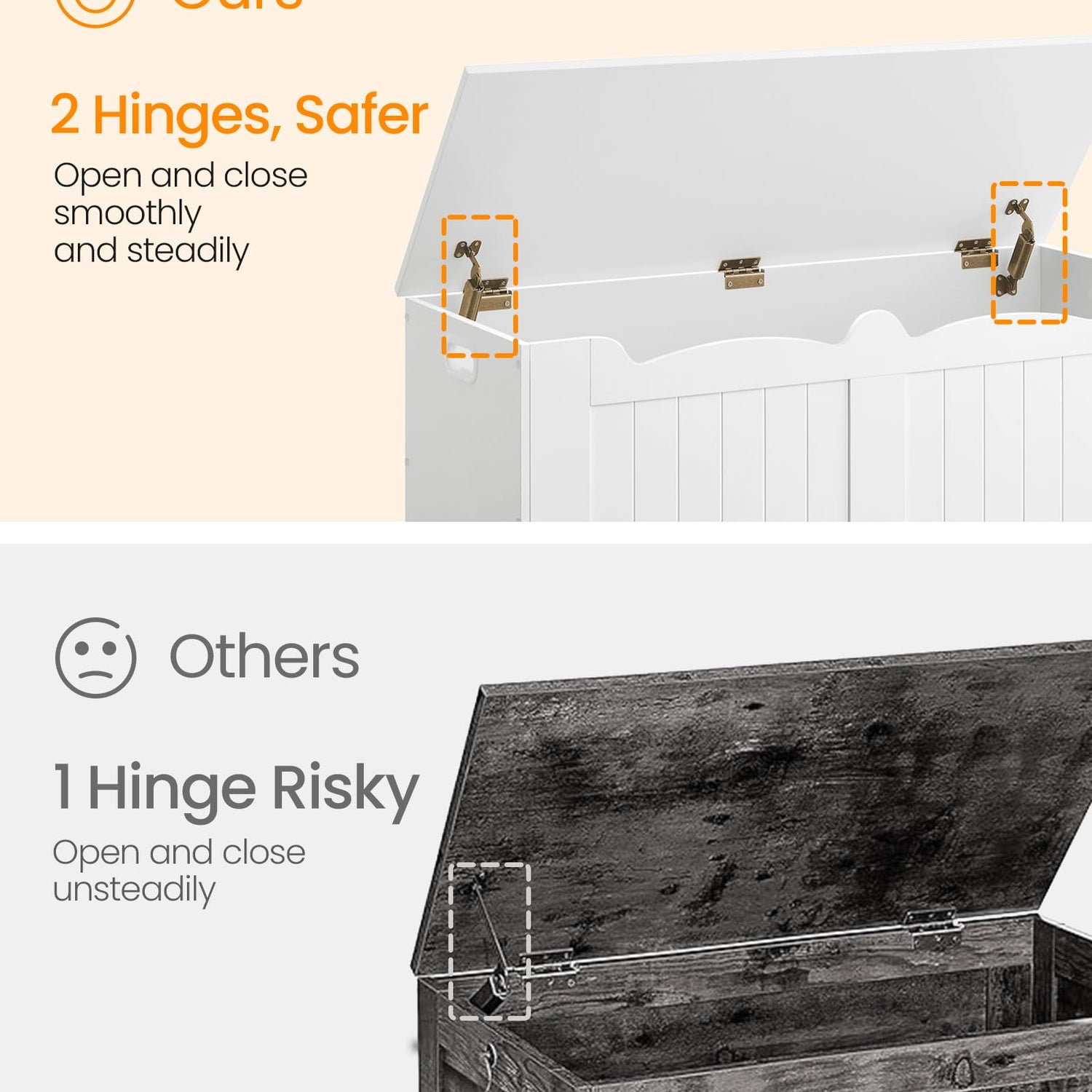 - 【Sturdy and Safe】Made of premium particleboard, this wooden storage bench is much more sturdy, the 2 safety hinges allow the lid to hover securely, prevent hand pinching, making it safer for daily use