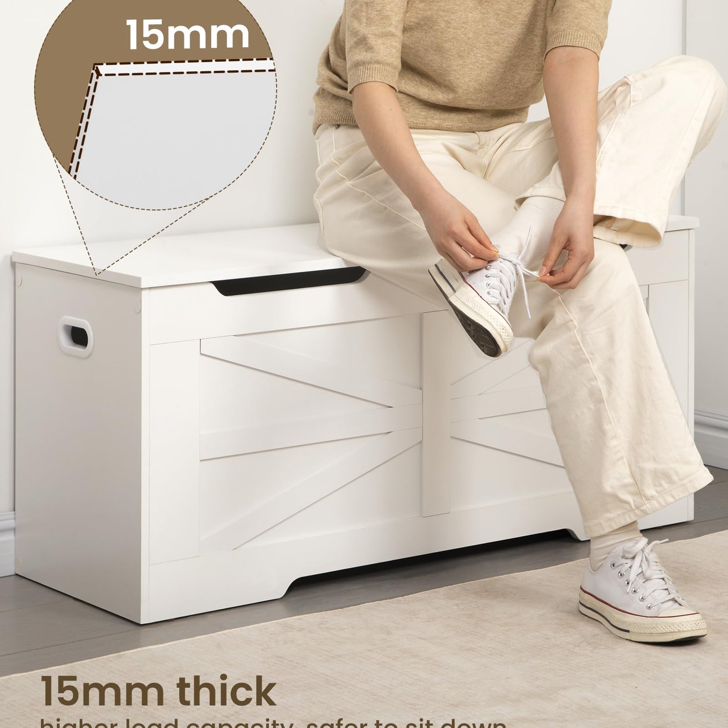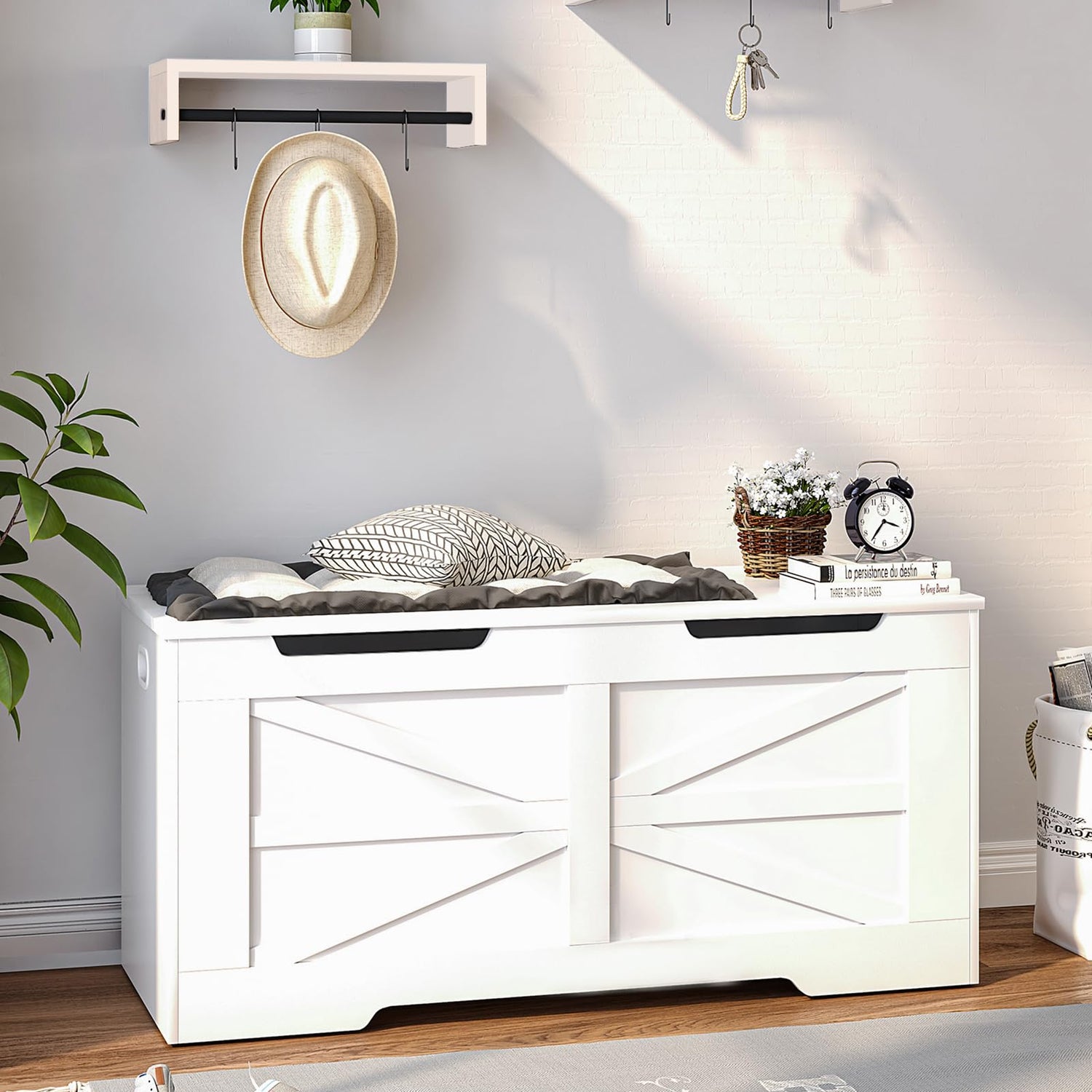 Hzuaneri Storage Chest, Storage Trunk, Wooden Storage Bench - 39.4" Lift-Top Storage Organizer with 2 Safety Hinges, Shoe Bench for Entryway, Bedroom, Living Room, White SB03403X