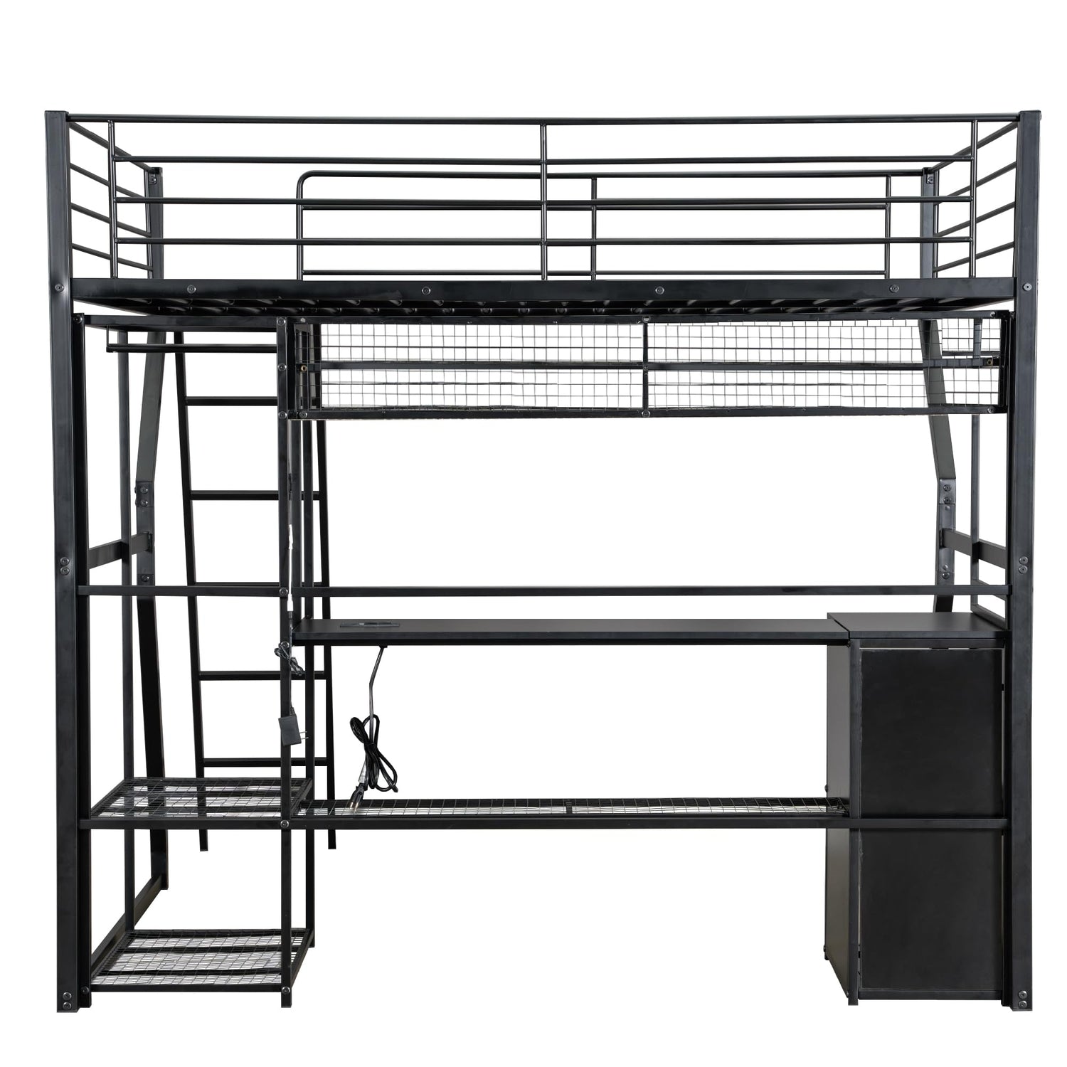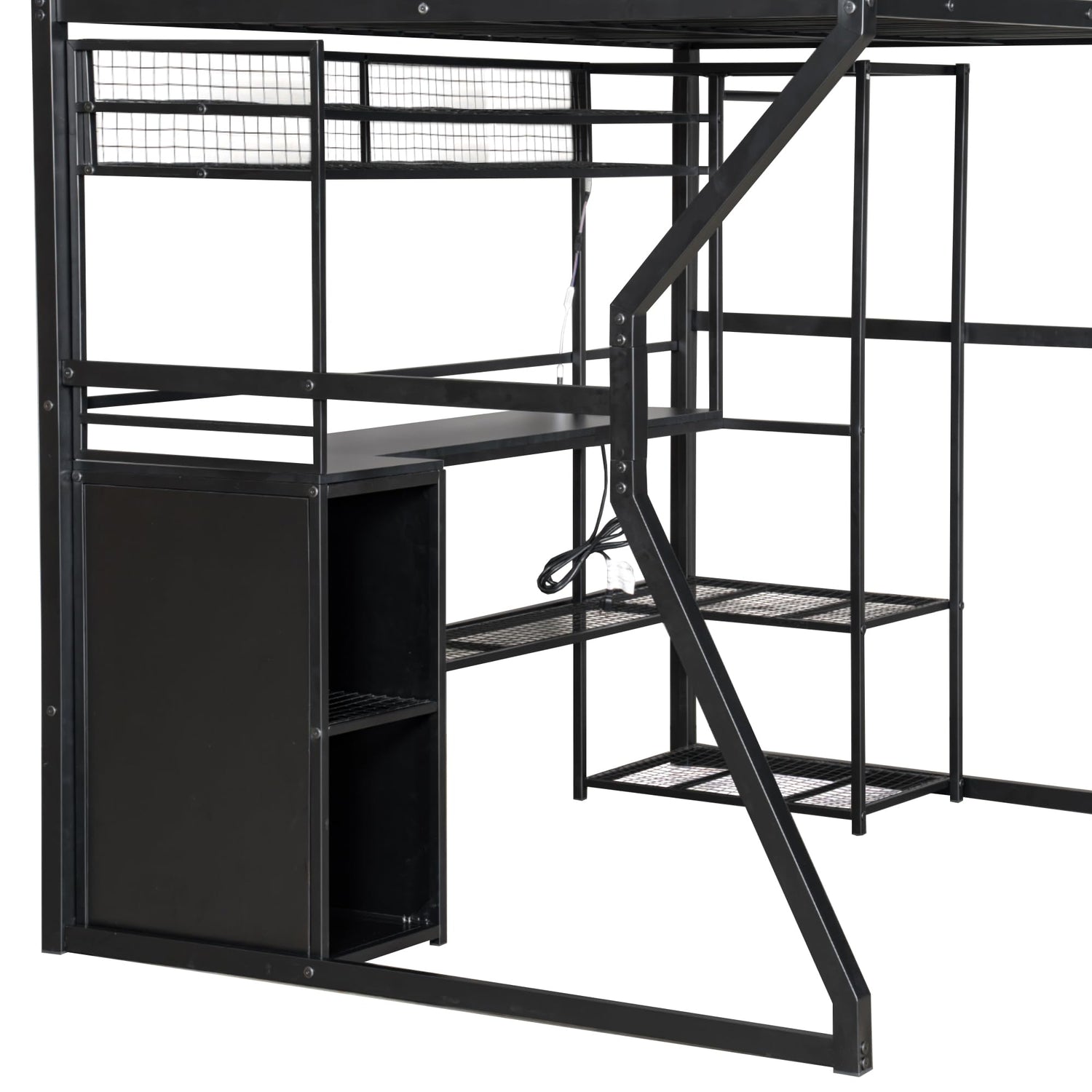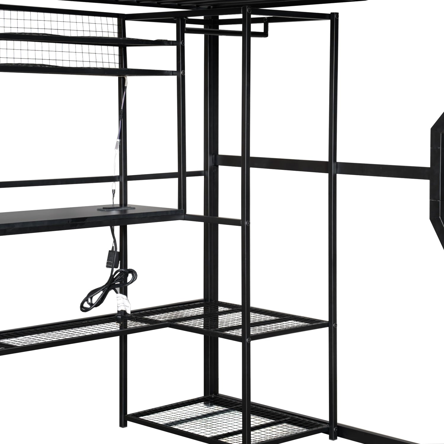 HZXINKEDZSW Full Size Metal Gaming Loft Bed with Built-in Work Station,Open Wardrobe,LED and Multiple Storage,Modern Bed Frame with Safety Guardrail for Kids Teen Bedroom Furniture (Black-15, Full)