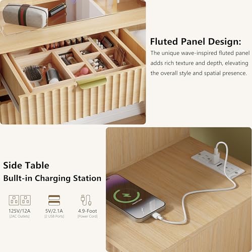 - 【Fluted Vanity Desk with LED Mirror & Metal Handles】The distinctive fluted panel brings sophistication and contemporary charm, while the durable metal handles provide smooth, effortless access. This vanity desk with mirror becomes a stylish centerpiece for any space. Ideal as a makeup desk with mirror or makeup table with lighted mirror, it’s perfect for morning routines, evening preparations, or even photoshoots.