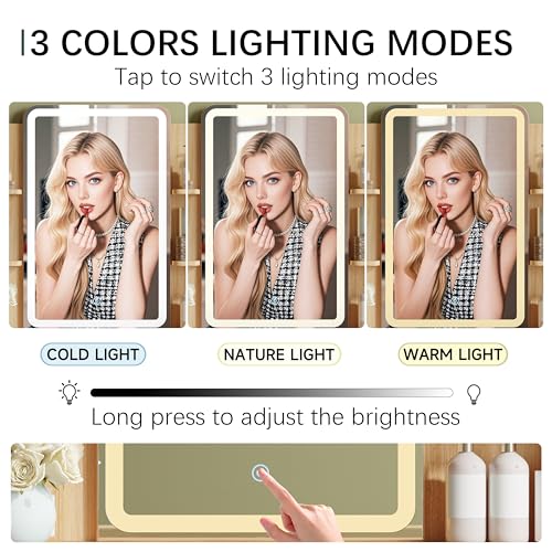 - 【Brilliant LED Lighting for Flawless Makeup】The IAISRO makeup vanity desk with lights features built-in LED lights with stepless brightness adjustment and three color modes (Warm, Natural, Cool). Whether you’re preparing for a day at the office, a night out, or a special occasion, this vanity mirror with lights provides perfect illumination for precise, flawless makeup every time.