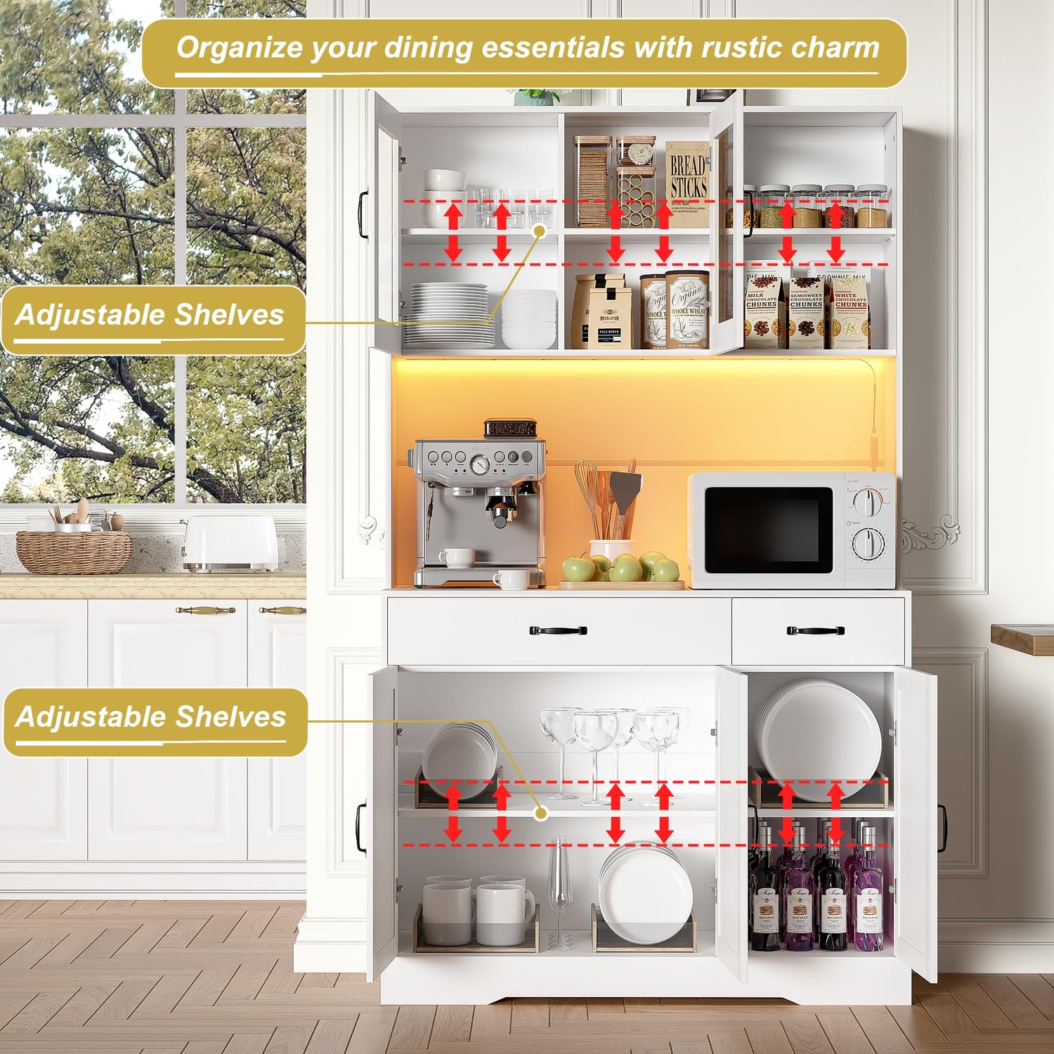 Iavyga 71" Kitchen Pantry Cabinet: Hutch Cabinet with Glass Doors, Pantry Cabinets with Drawers, Adjustable Shelves, LED Light & Power Outlets for Kitchen, Living Room, Dining Room