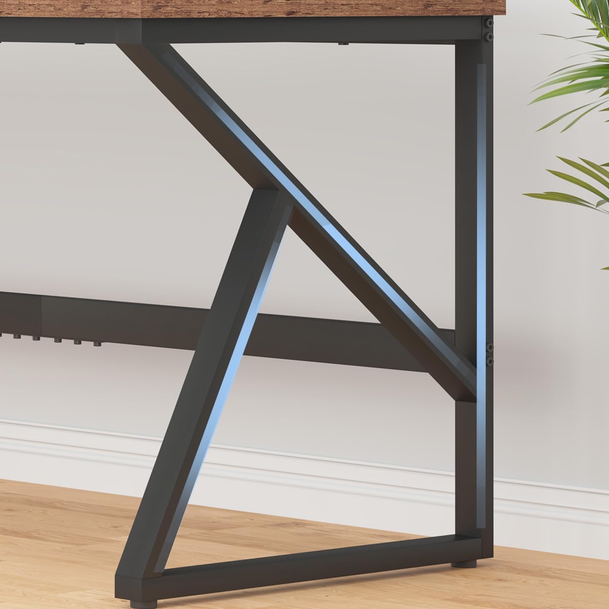 - Robust Construction: Constructed with a high-density MDF desktop and reinforced with two sturdy K-shaped metal legs, this large metal wooden desks for home office offers stability and can support up to 400 pounds. The four adjustable leveling feet of this rustic desk allow for stable placement on uneven floors, maintaining balance and protecting your floor from scratches.